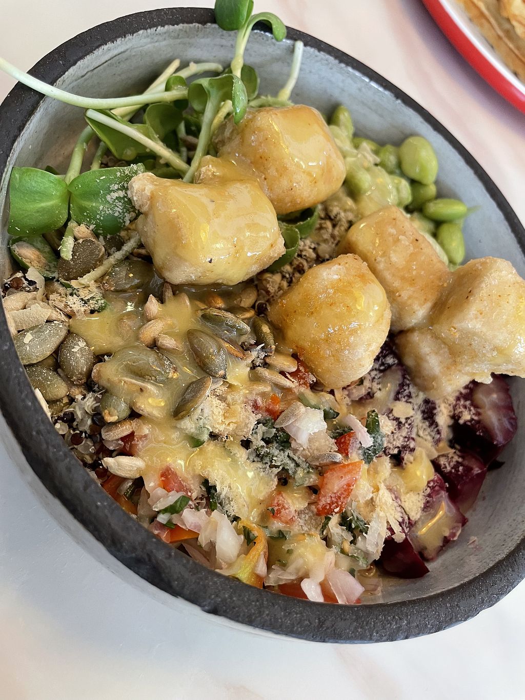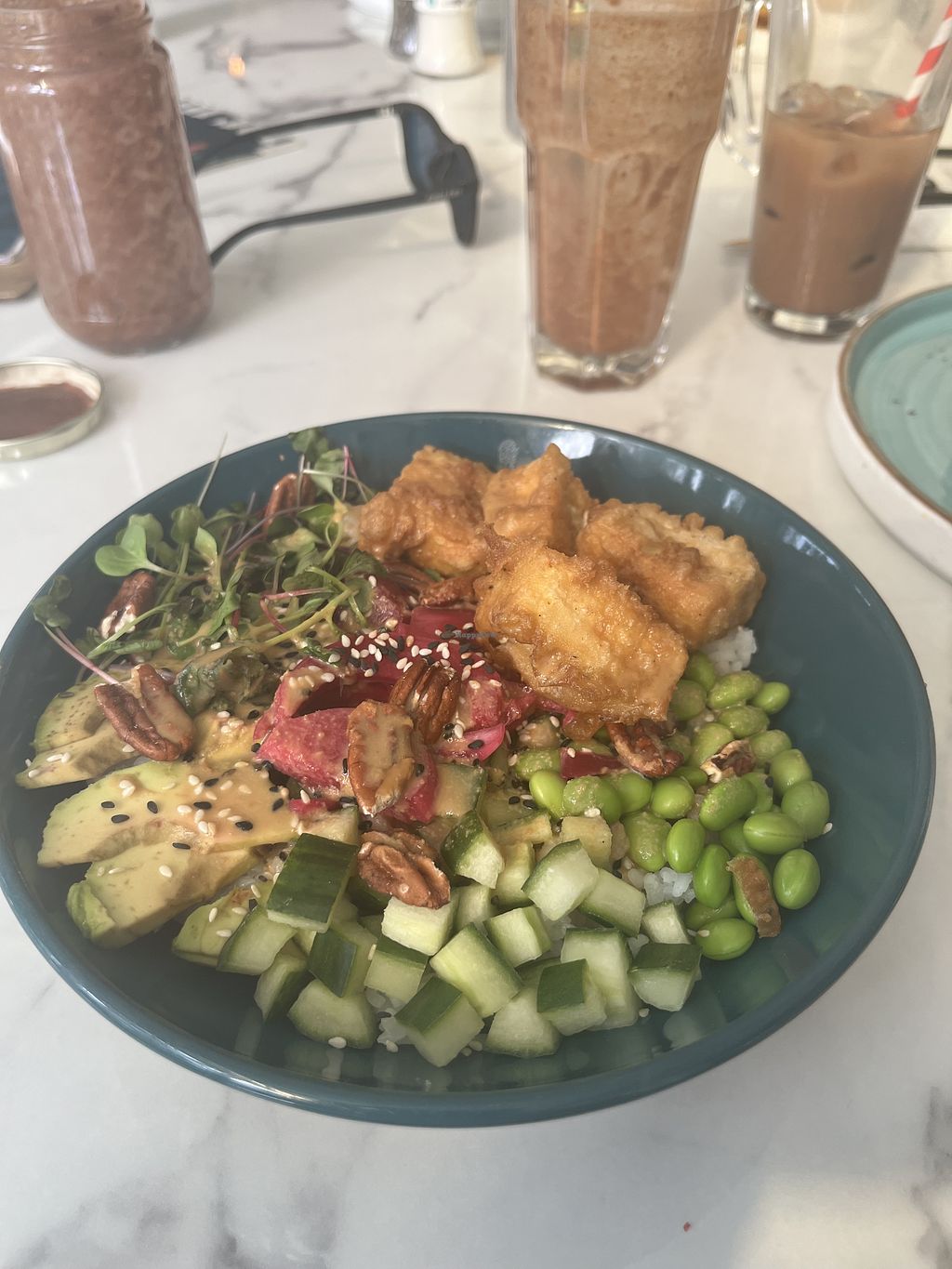 Read moreThe menu has clearly labelled vegan options - over 2 visits I tried a couple of the superfood smoothies (chocolate indulgence- too bitter for me, elvis- very thick but nice), the tofu poke bowl (too much vinegar in the dressing for me) and the vegan Buddha bowl - this was very nice.