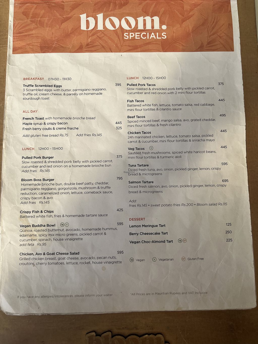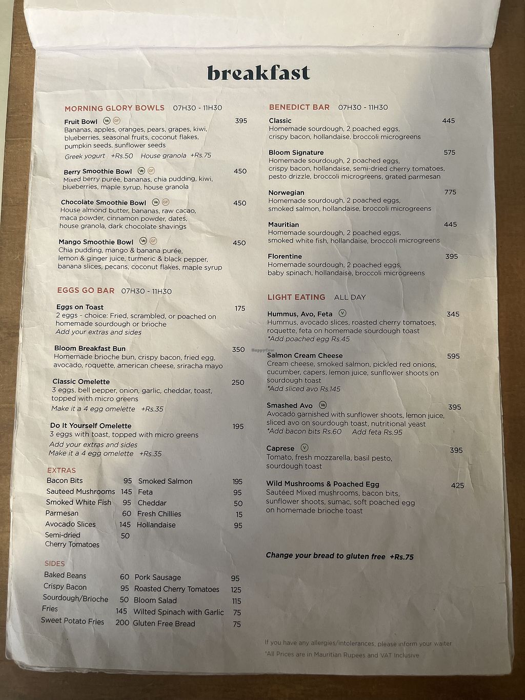 Read moreFrom my experience, the staff could do better. Upon arrival they pointed at a table I could use and didn't even give me a menu. After about 10 minutes of waiting, I got my own menu. After waiting some more, I had to grab a waiter's attention to take my order. I ordered some smashed avo on toast with added mushrooms. The waiter returned a few minutes later saying the avocado wasn't fresh and asked if I wanted to choose something else. There were limited other vegan options, so I begrudgingly agreed to hummus on toast. On the menu this also comes with feta but asked for that to not be included as I don't eat it. When my food came I was surprised by the portion of mushrooms. It cost 145mur (£2.40) for a potion size that sits on a little dish that is usually used for holding ketchup or other sauces! I was also surprised I was charged for them given that it was essentially a substitute for the feta on the meal that I ordered. The overall meal was nothing to shout about. The sourdough toast was hard to cut and hummus was dried out and lacked any flavour. Oh, and weirdly, even though I was told avocado was off the menu, there were a few cubes of it on my plate. So I'm not sure why I couldn't have my original order!