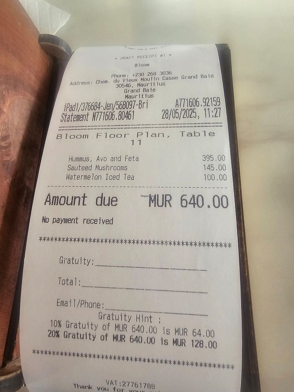 Cons: Doesn't have loads of options, Pricey for Mauritius but still good compared to UK