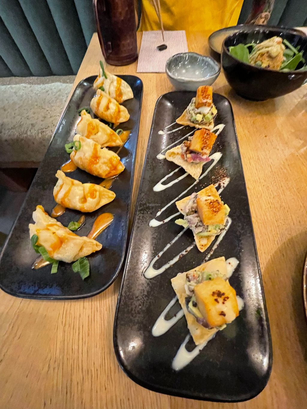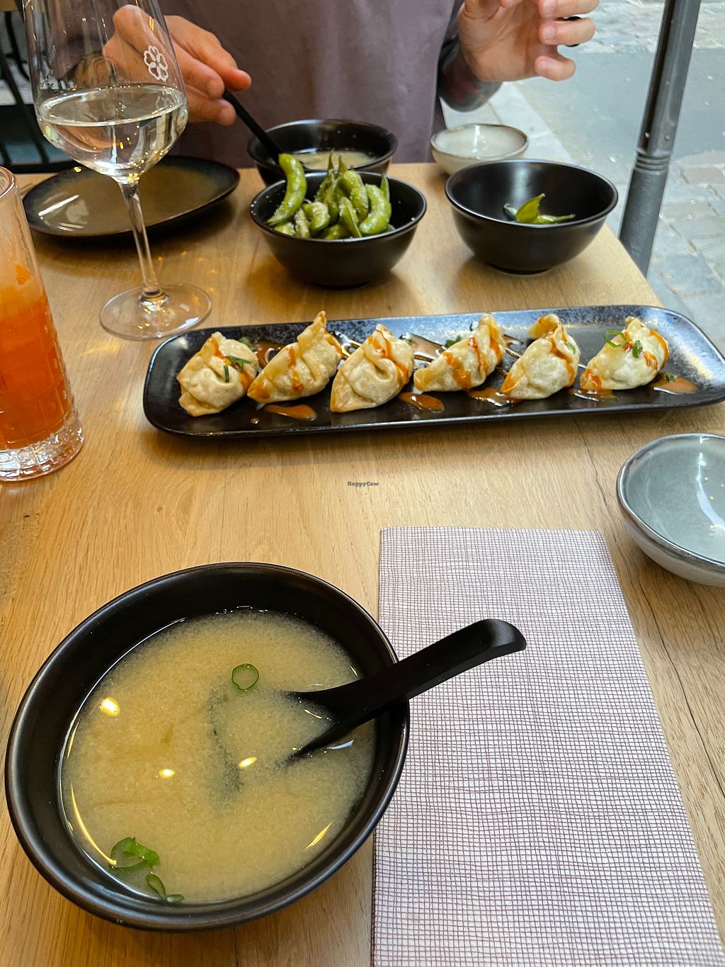Crispy gyoza and choice of edamame or miso soup for omakase starter