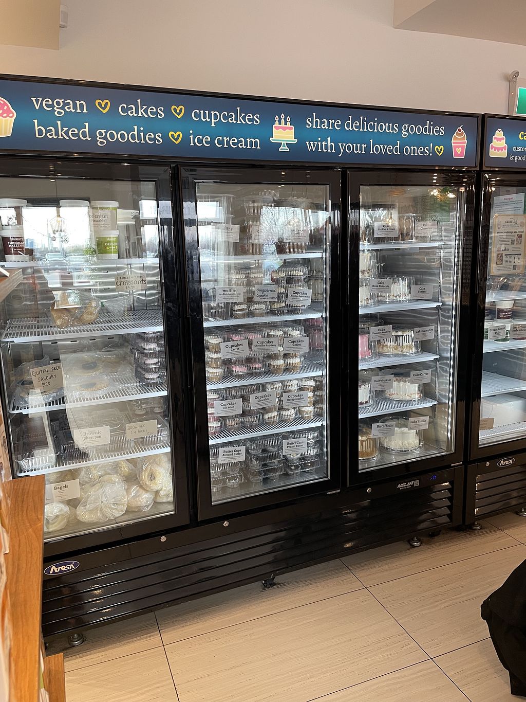 Pros: Fully vegan, Items (cream cheese etc) in fridges to take home, Fresh donuts