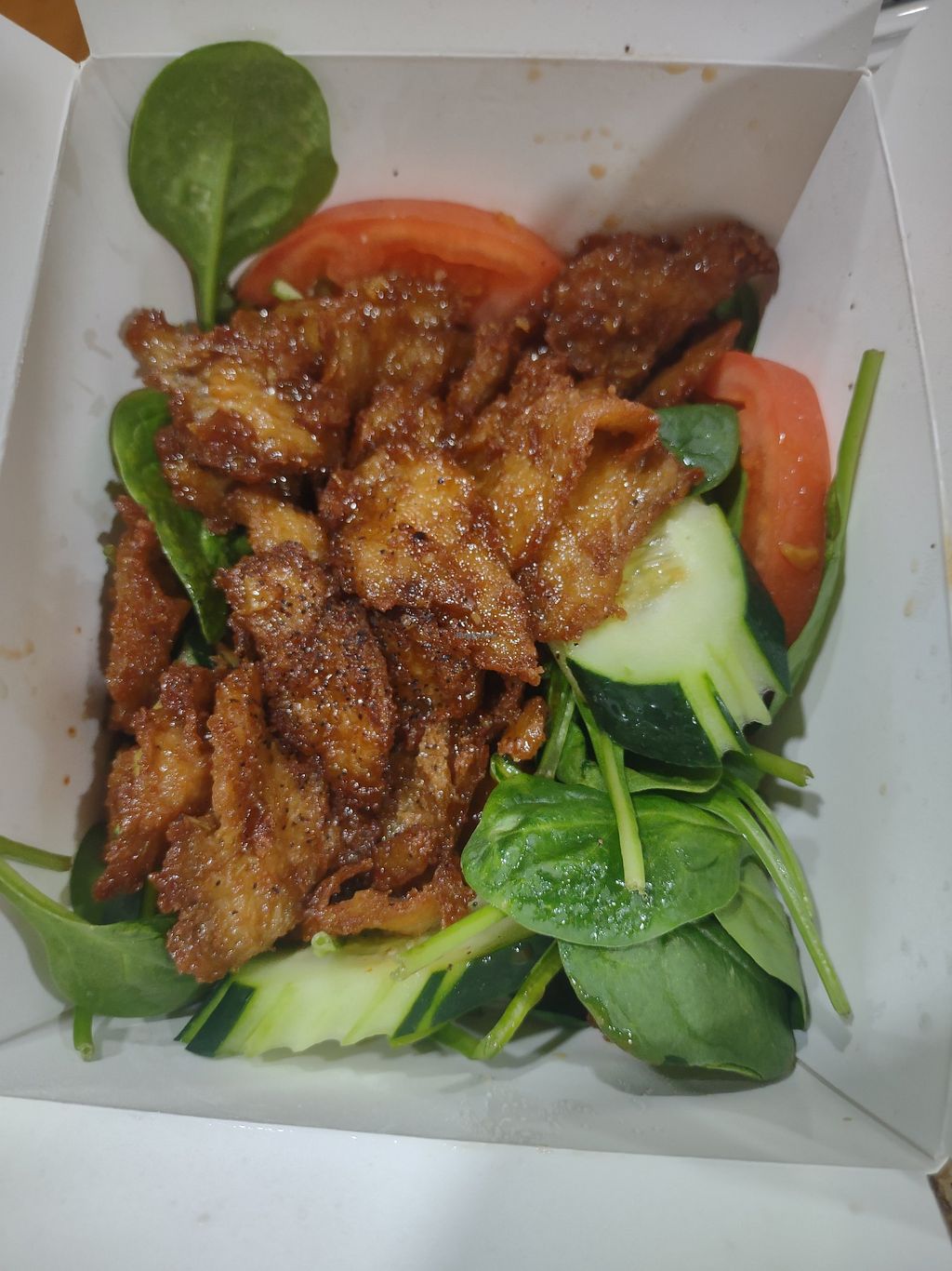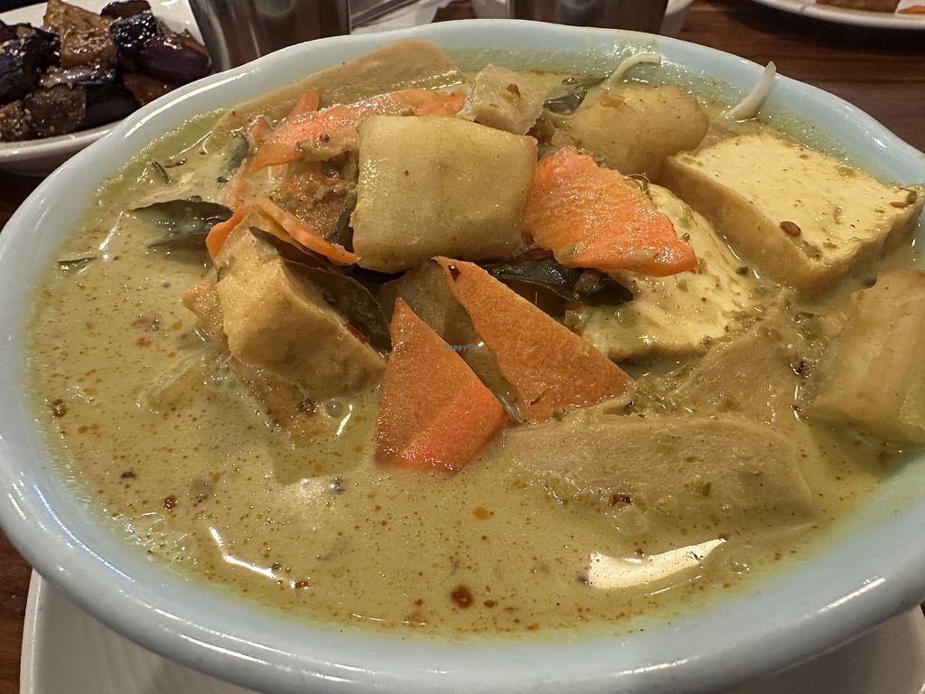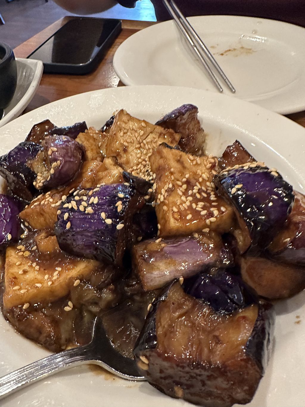 Mushu mushu, eggplant curry and sides of steamed tofu and steamed zuccβ¦