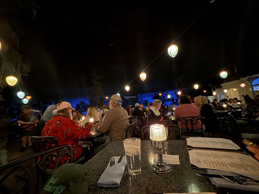 Wow, what an amazing experience this place is! From the food to the atmosphere, everything was perfect! We initially had reservations for Cafe Orleans, but unfortunately, they had to close down for the day. However, Blue Bayou kindly accommodated us despite our lack of reservations, and we're so grateful we got to experience it on our last day in Disneyland. They offer a vegan option for the starter (Heirloom Tomato & Watermelon Salad), entrée (Lemon Basil Pasta), and dessert (Crème Brûlée). I ordered the pasta and the crème brûlée, and both were absolutely delicious! But what truly sets this place apart, in my opinion, is the ambiance and decor. The establishment is beautifully decorated to create an outdoor, nighttime atmosphere, and being able to see people on their "boats" enjoying the Pirates of the Caribbean ride only enhances the overall experience. The service was prompt, and the staff was incredibly attentive and friendly. I've heard that getting reservations here can be challenging, so if you plan on dining here, I highly recommend making reservations well in advance. All in all, it was a truly memorable experience, and I can't wait to return!