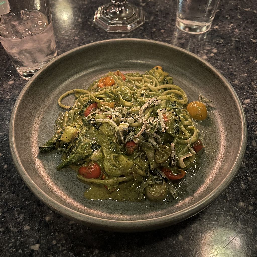 Wow! I had the best food ever here. I started with the hearts of palm marinated salad which was the appetizer. The one thing I forgot to take a photo of!! Then I got the fava bean pesto pasta and oh my god was that the best pasta I have ever had. And it was vegan! Not to mention the desert!!! It was crème brûlée🥹 which was something so special for me because I’ve been vegan for almost 8 years and I haven’t had that since I went vegan. I was amazing at the quality and the options at the restaurants yes there was only one option for each part of the meal, but each option was 10/10! So you have to be wanting pasta and crème brûlée to really get the full enjoyment out of the food here but I highly highly suggest it. Always something I wanted to do and I was sooo sooo happy that I loved the food. I would have sat there and ate a undressed salad just to enjoy the atmosphere but boy was I in for a treat. For sure stop here if you can!! We did manage to get a walk in!