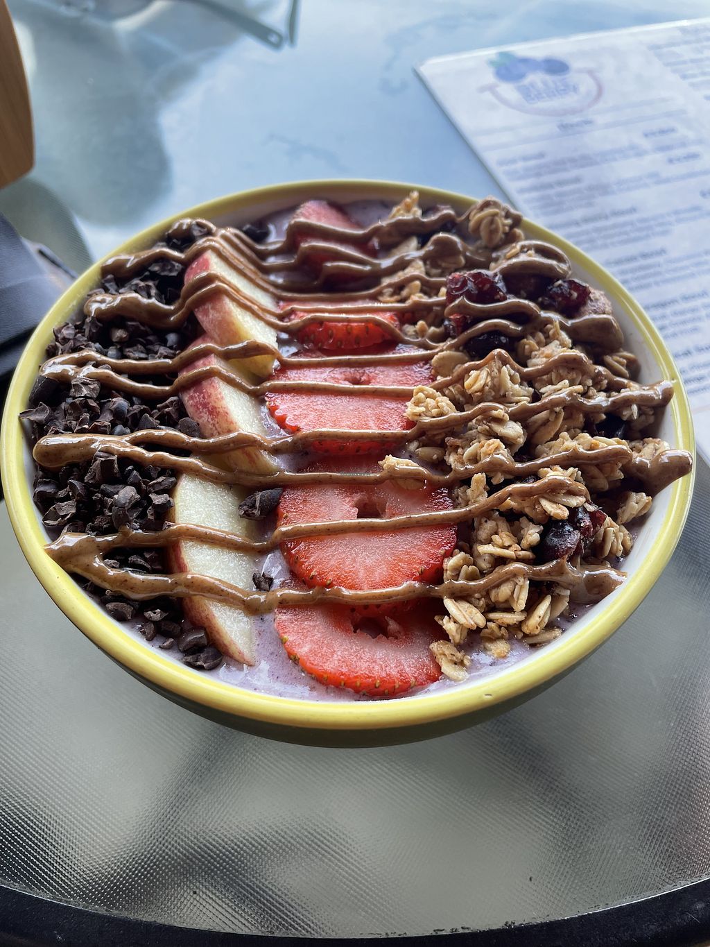 Place is now called Blue Berry and has a different menu. Super berry bowl was good but I would’ve liked the consistency to be thicker. Nice addition of the vegan protein powder tho. My boyfriends smoothiebowl wasn’t blended well enough so it had ice chunks. That was a bummer. Prices are including tax and service.