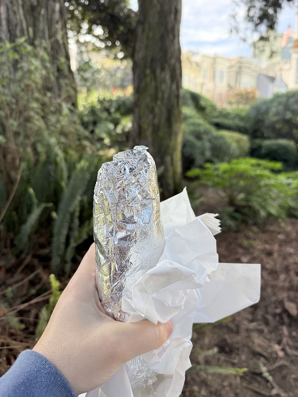 The burrito is delicious and perfect on a Sunday morning with their coffee.