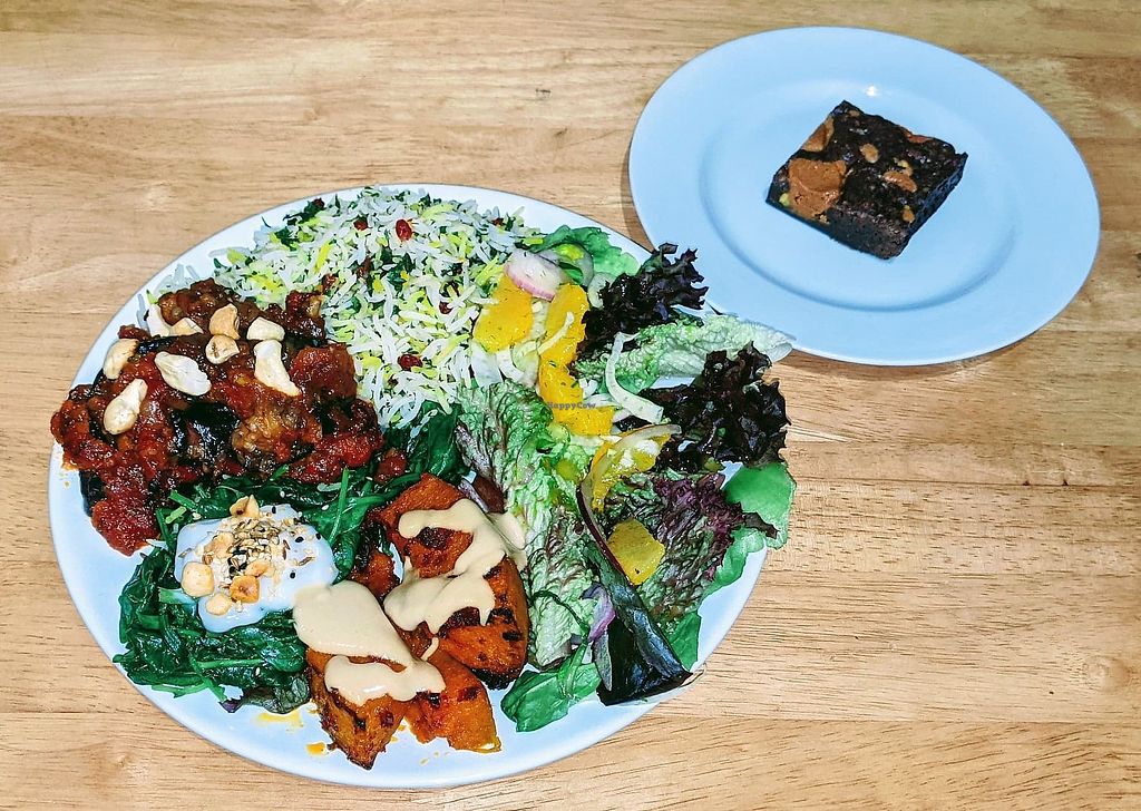 Excellent vegetarian and vegan café. I had the Imam Bayeldi main that comes with salads and my friend had Hommity Pie and the rice bowl. Highly recommended.