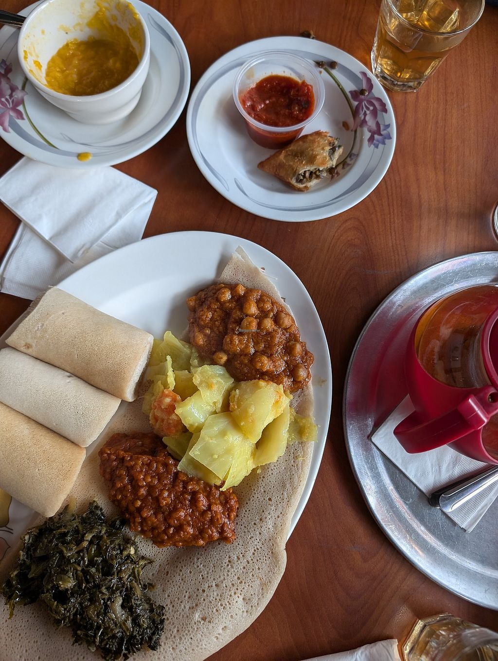 long ago i lived in dc, where there’s a vibrant Ethiopian community and plenty of great vegan Ethiopian food; this is without a doubt the best Ethiopian i’ve had since then. the veggie sampler platter was everything i’ve loved about Ethiopian cuisine and more—there’s a mushroom-based dish included that i’ve never had before. highly recommended!!!