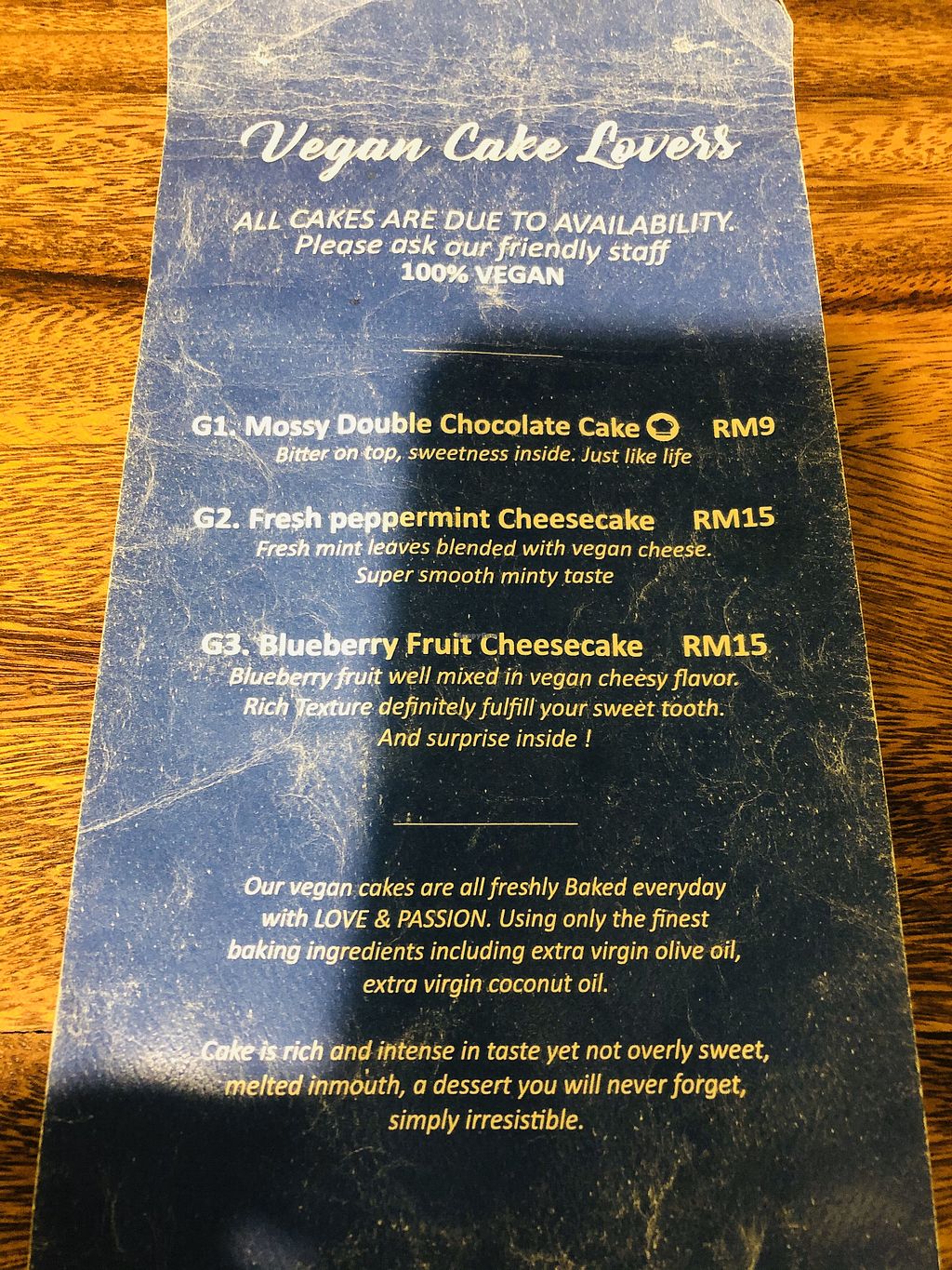 This is the most enjoyable vegan meal I've had during my time in Penang, so far. The restaurant itself was inviting and relaxing; the menu varied enough to offer some interesting options, but not so big to be overwhelming. Every item I tried was delicious (Asam Spicy Ramen; Popcorn Mushroom; Creamy White Sauce Spaghetti, Blueberry Cheesecake and Mossy Double Chocolate Cake) - you could taste the time and care that had gone into looking after each ingredient. The staff happily accommodated my ask to alter my food choice from the menu and gave me some helpful tips on making vegan sauces and fermentation. Overall great value and memorable experience. Will visit again!