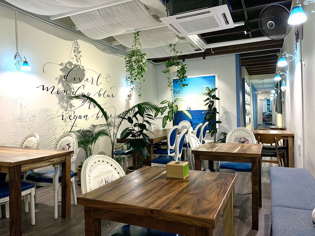 Cozy and cute blue themed Western vegan restaurant. Good food and yes they have vegan cakes as well. We enjoyed our lunch there and will come by again.