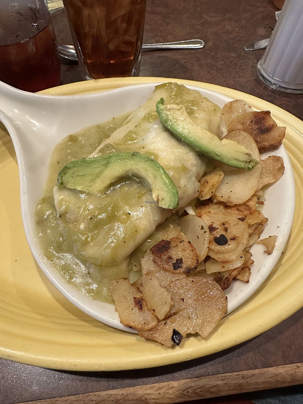 Vegan burrito. Delicious salsa verde