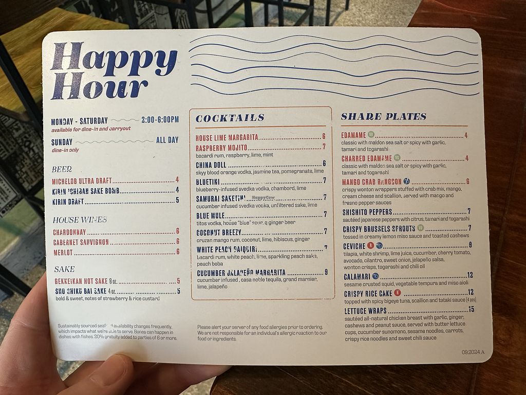They have a long list of vegan sushi options AND it’s cheaper! Finally, someone gets that veggies are cheaper than fish. They also have a 20% off on Tuesdays for for happy hour (just the vegan items.)