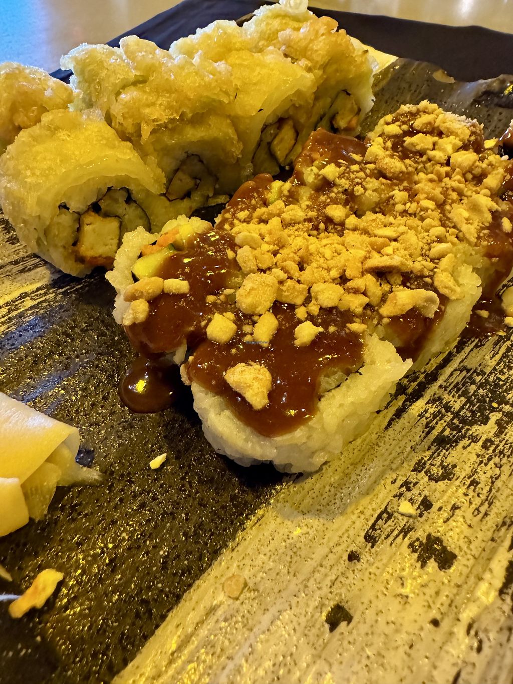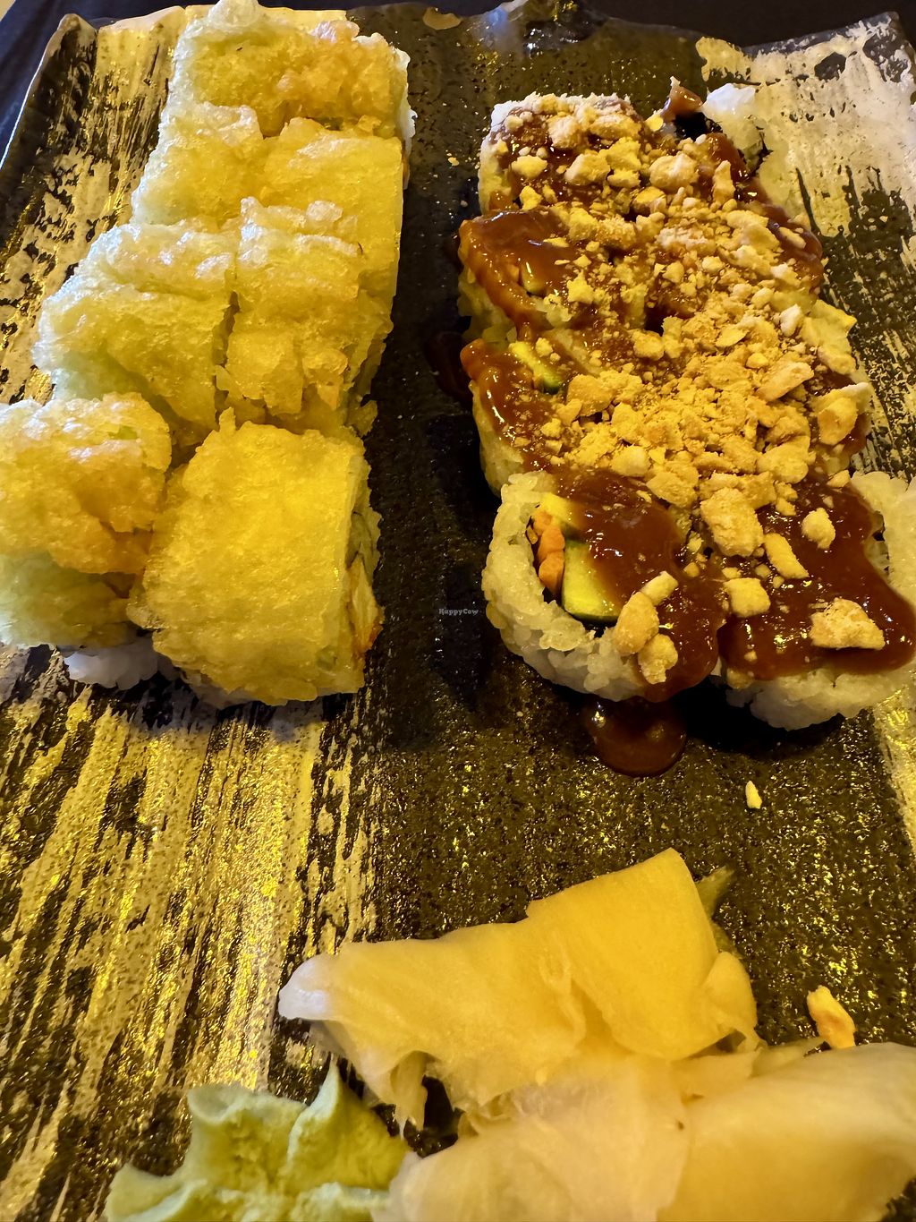 Veggie roll (left). Bito Maki (right). Both Vegan.