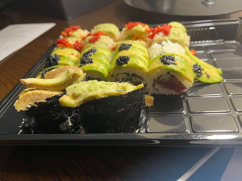Vegan hot night, avo kaluna, black dragon, and cowgirl rolls