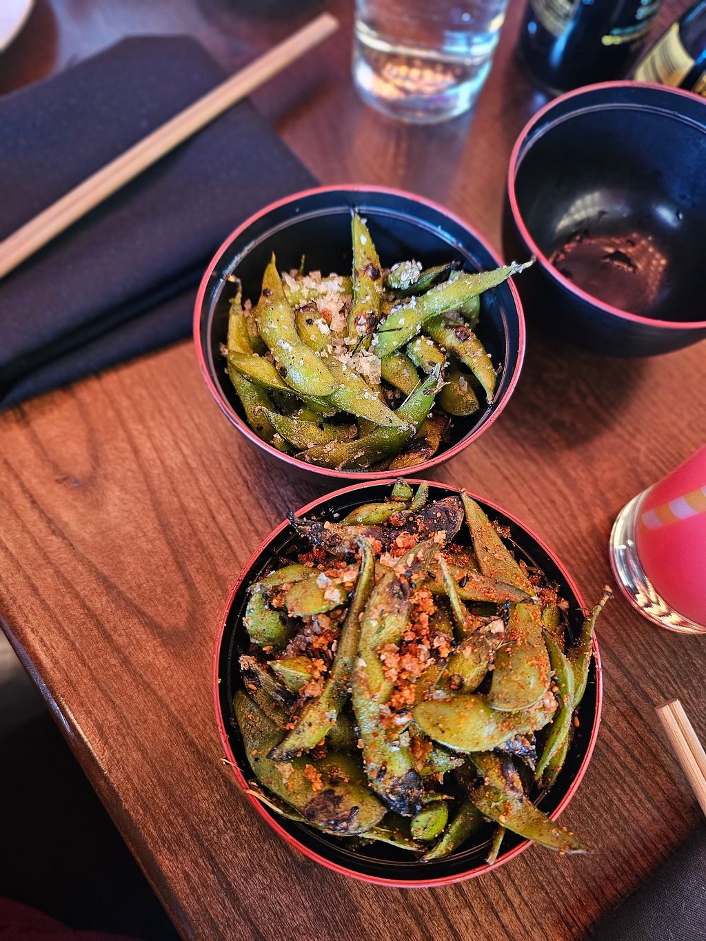 Has an extensive vegan menu. The charred spicy edamame and brussel sprouts are great. I highly recommend the cowgirl roll and the eden roll!