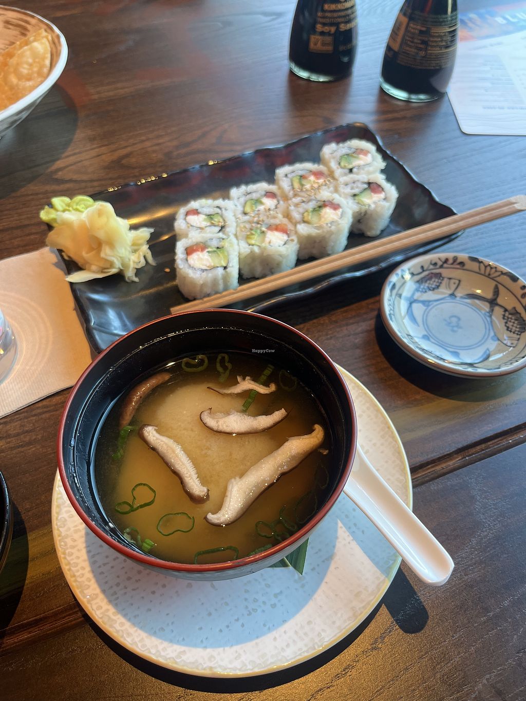 they have a bunch of vegan options available on the menu that are clearly marked. the sushi and miso soup were delicious! staff also informed me that the kitchen has a separate area for vegan items to be prepared. amazing!!