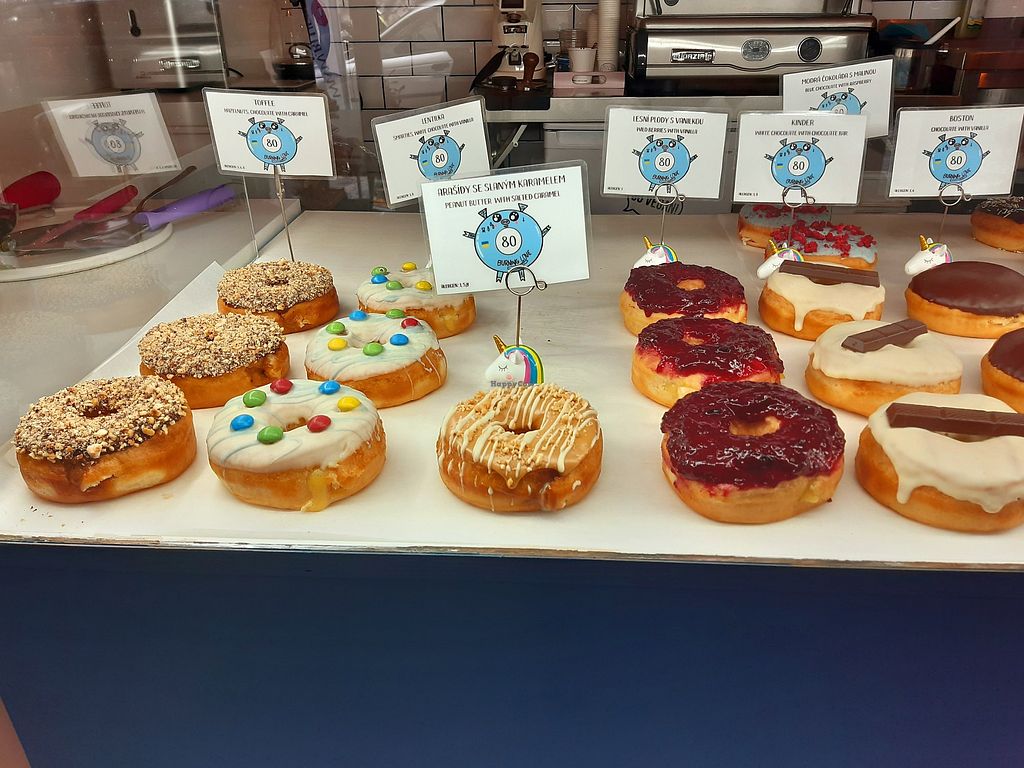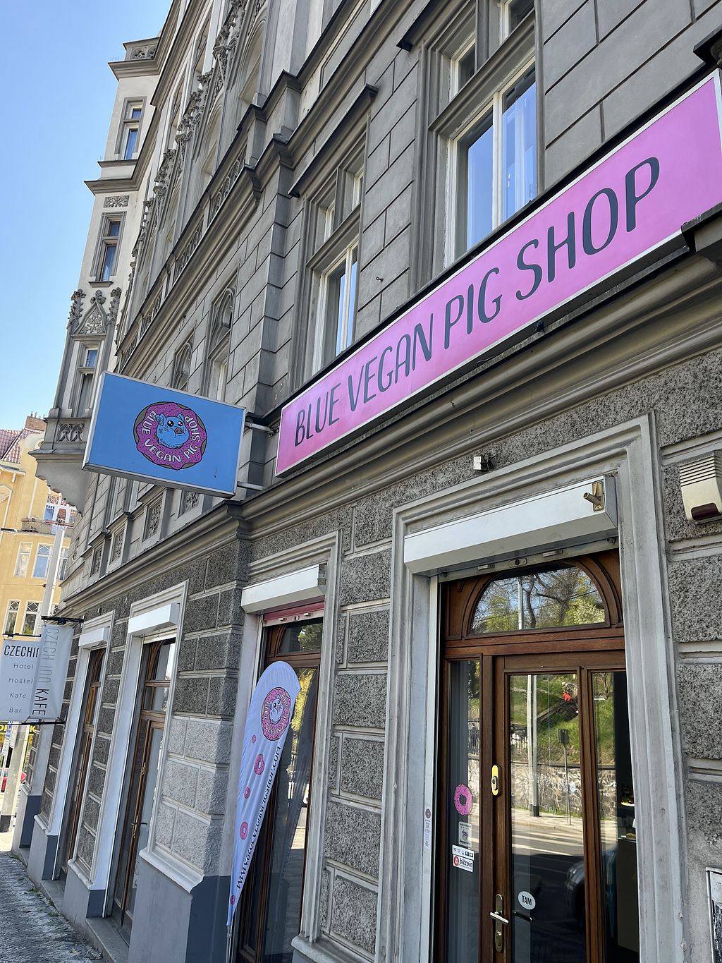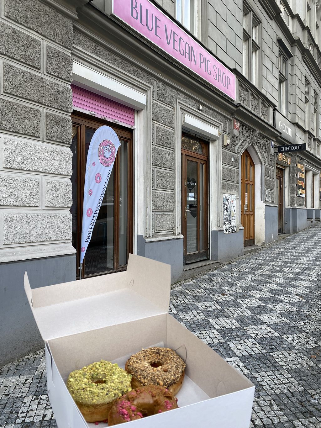 Vegan sweets shop est. 2017. Offers a big variety of vegan donuts and a few other sweets like cakes. Sample donut flavors include toffee, blueberry with vanilla cream, oreo, coconut, and 'bacon' donut. Relocated from Voronezska 19, Praha 10. Reported closed June 2024.