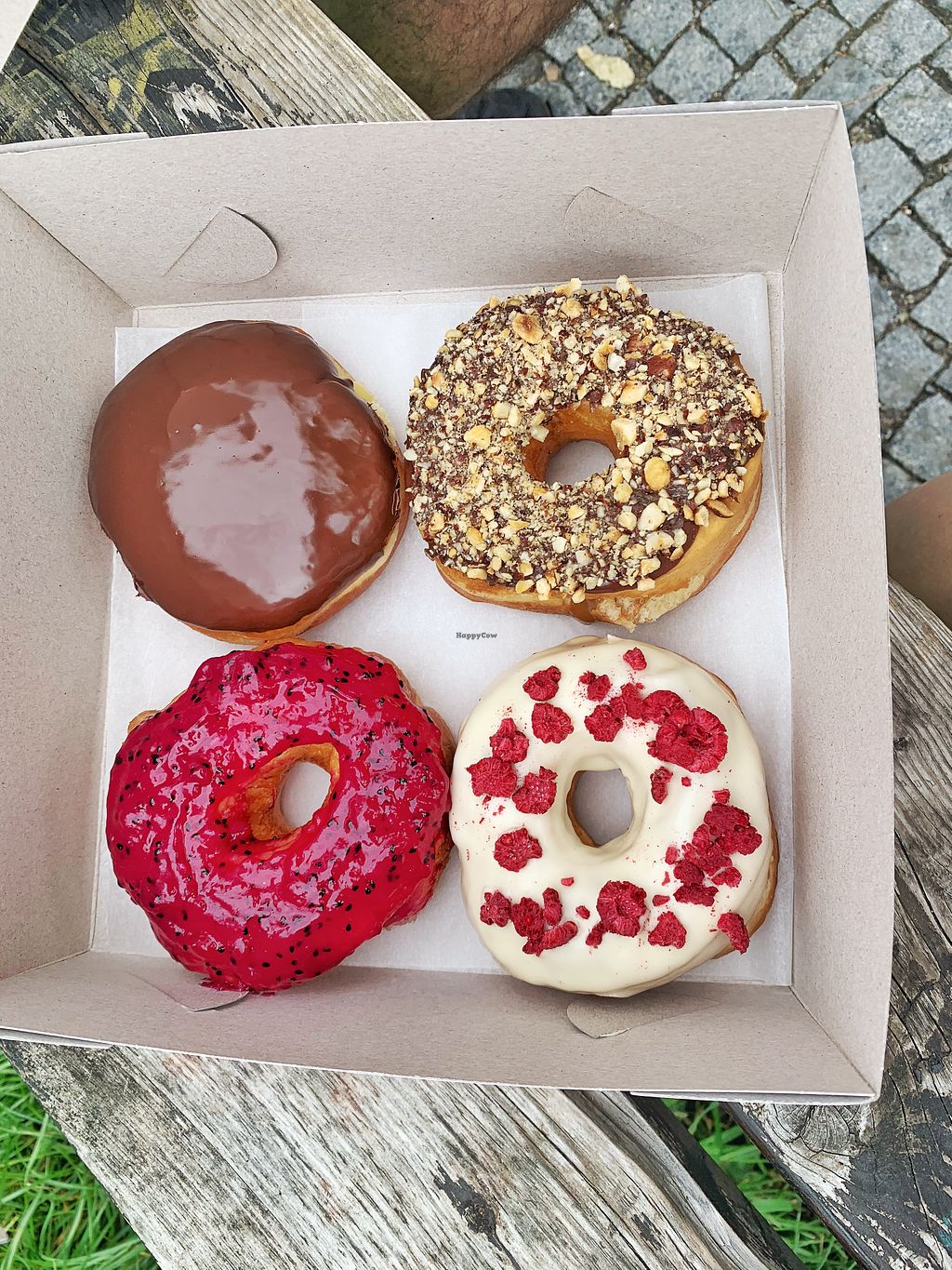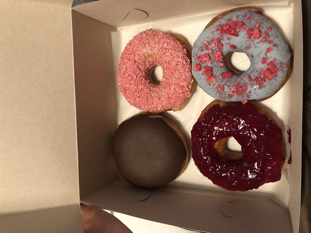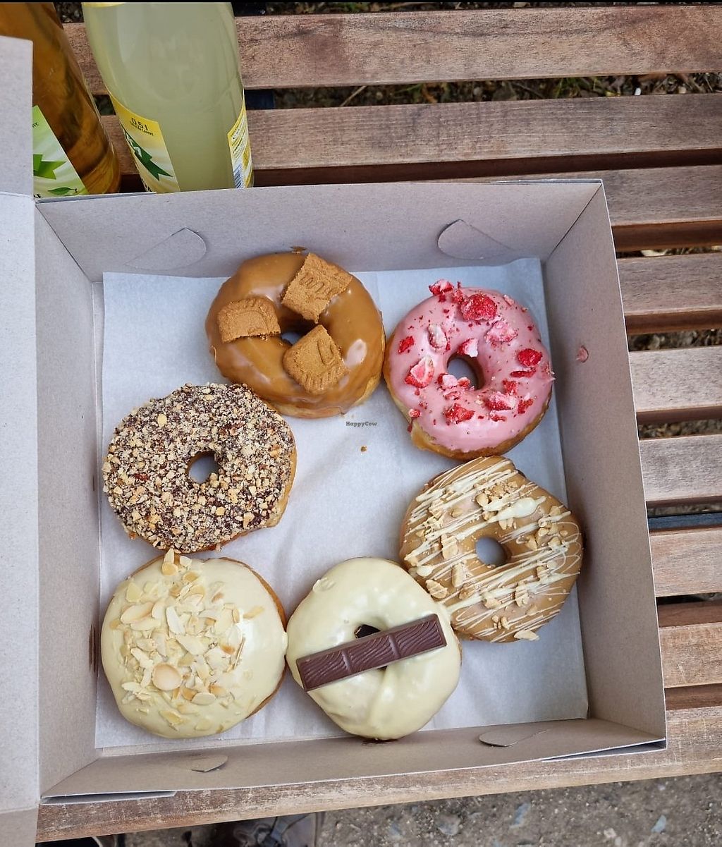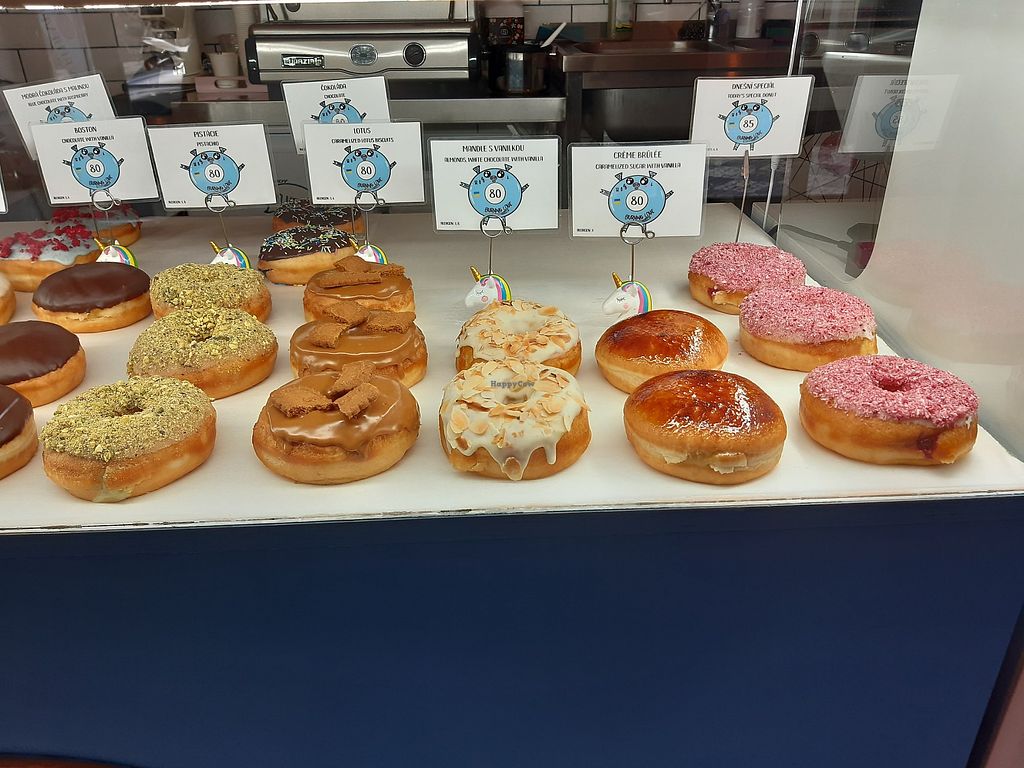 Variety of delicious doughnuts , filled or not filled, good price, best best best best vegan doughnuts ever!