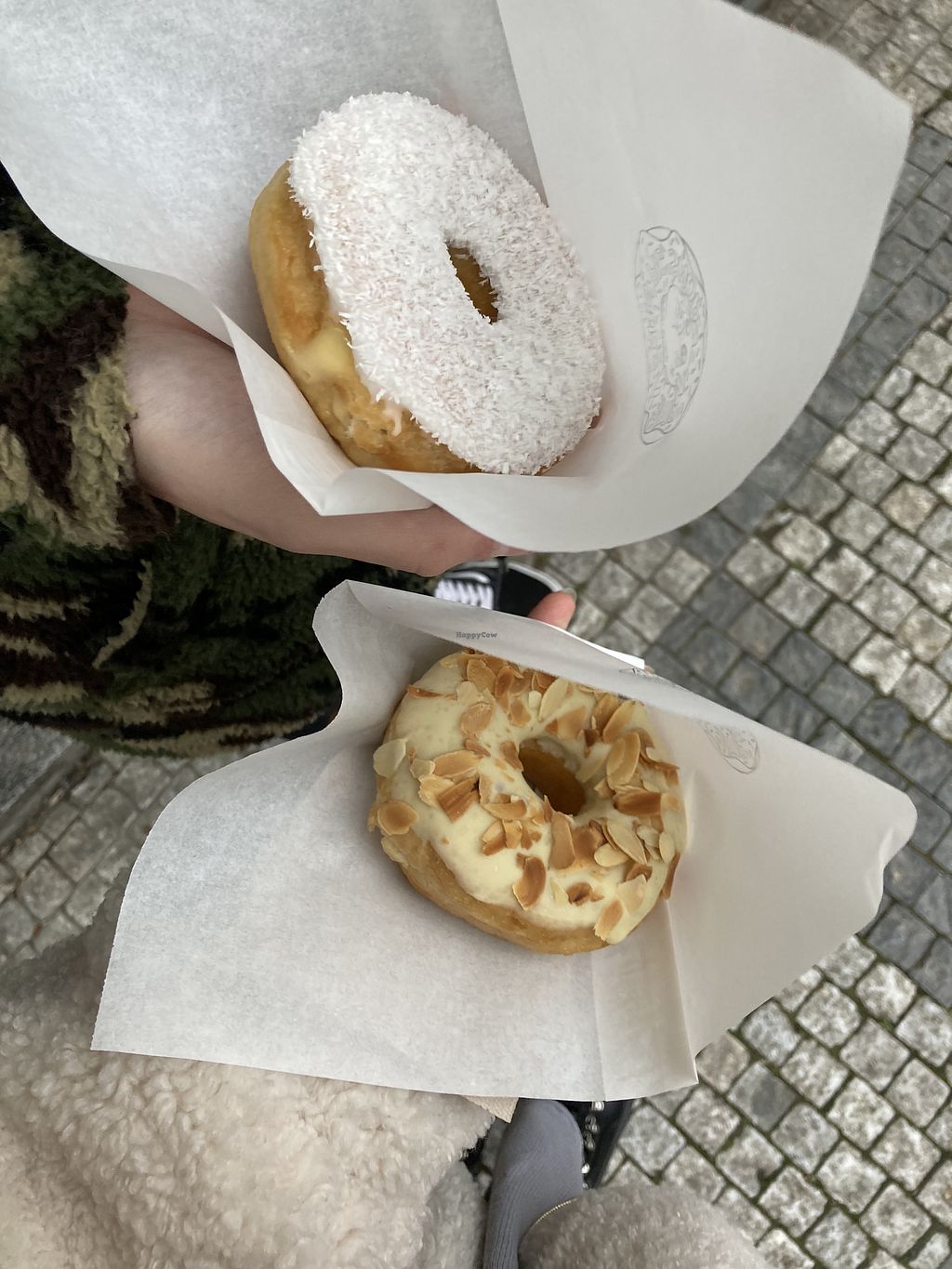 Super tasty donuts. It exceed my expectations. Some of them have flavor in it. They are zero waste friendly so you can bring your own container instead of buying it for 10 Kč.