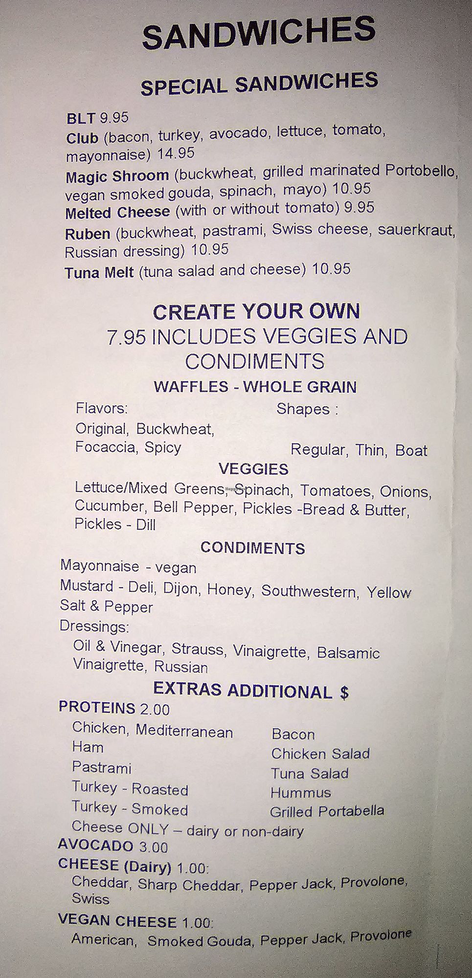 I didn't know where to start. I'm not used to most of the menu being vegan and gluten free. I enjoyed the Magic Shroom sandwich on buckwheat waffles with added avocado and a substitution of Follow Your Heart Pepperjack for Gouda.