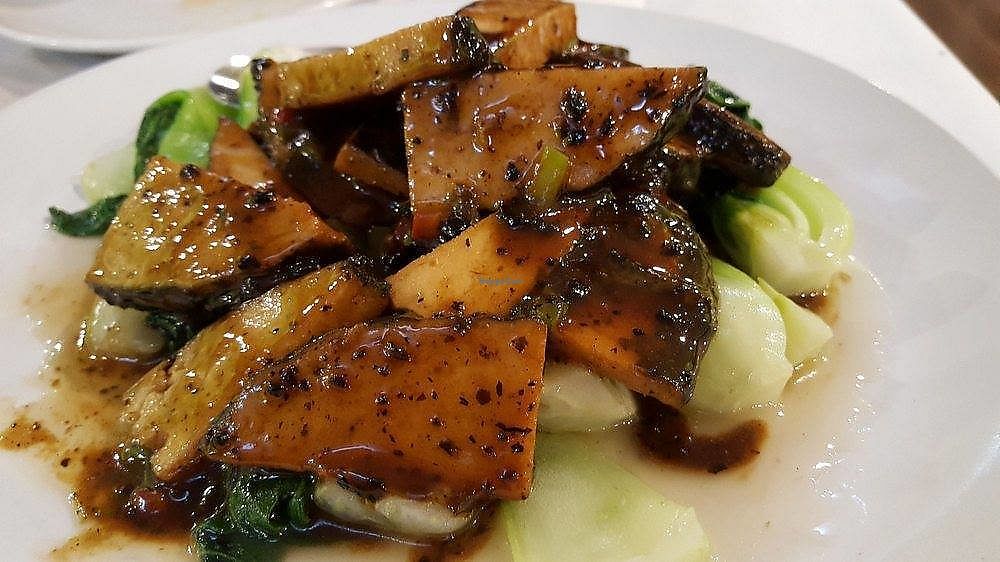 Vegetarian restaurant opened Jan 2018 serving Chinese food. Uses tofu, vegetables, and mock ham and meats. Sample dishes such as fried tofu, mock fish, pan fried noodles, and mock chicken with rice. No garlic or onion used. Plenty of seating. Reported closed, Jan 2019.