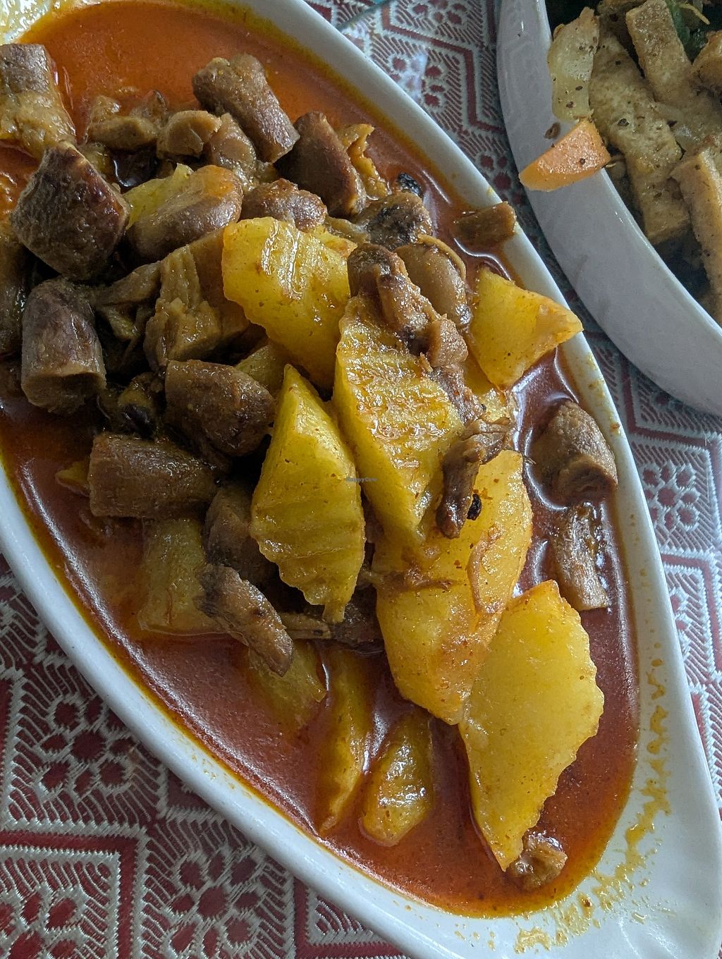A place I want to go to again and again to try out all their dishes. Unfortunately it's a bit far from where I live - it's directly at the Ring Road in Maharajganj, not far from Bhat Bhateni Store. Great menu with many pictures and loads of veggie, mushroom and tofu dishes - good to share. There were two of us and we had three different dishes, along with steamed rice - we were just about able to finish them.