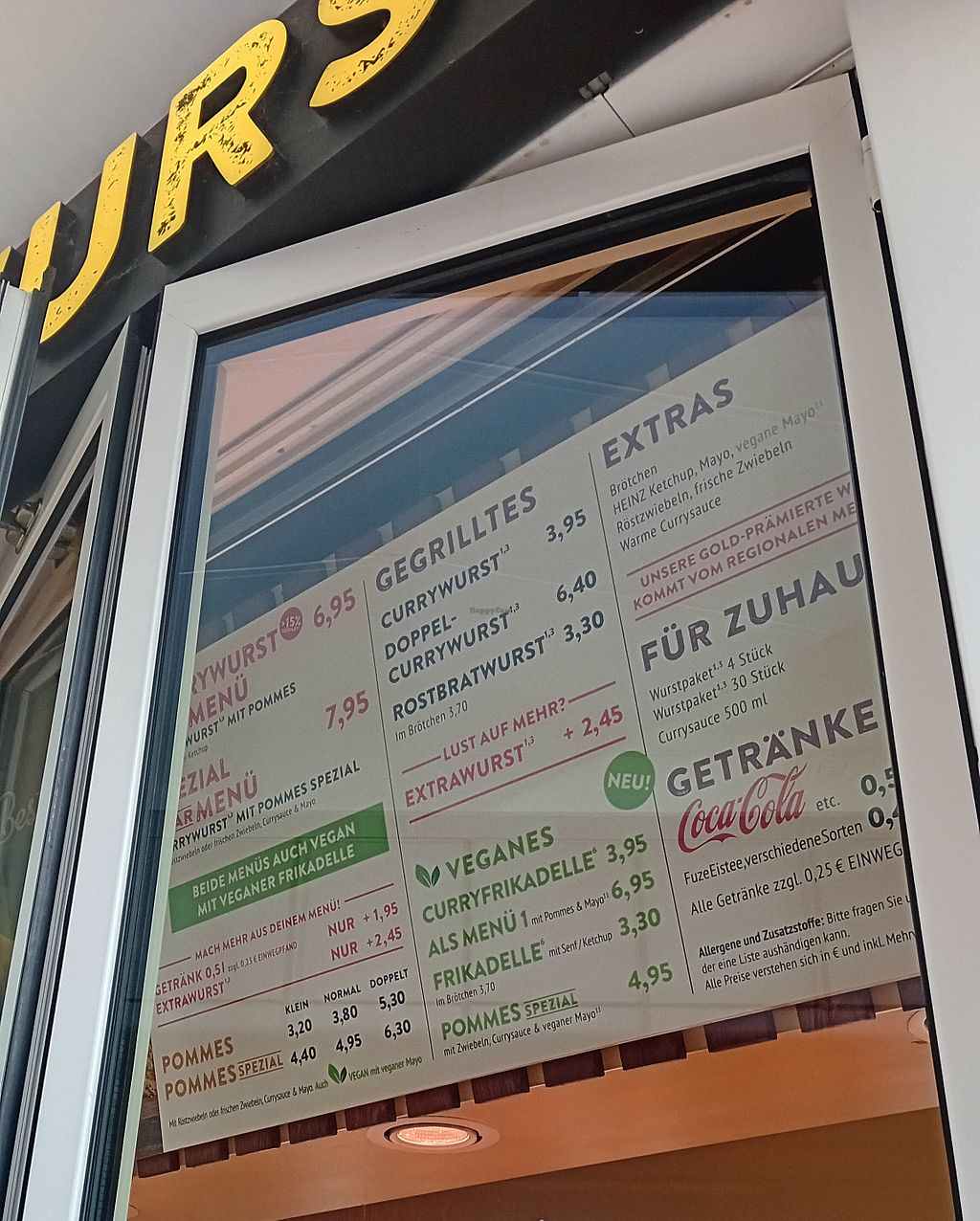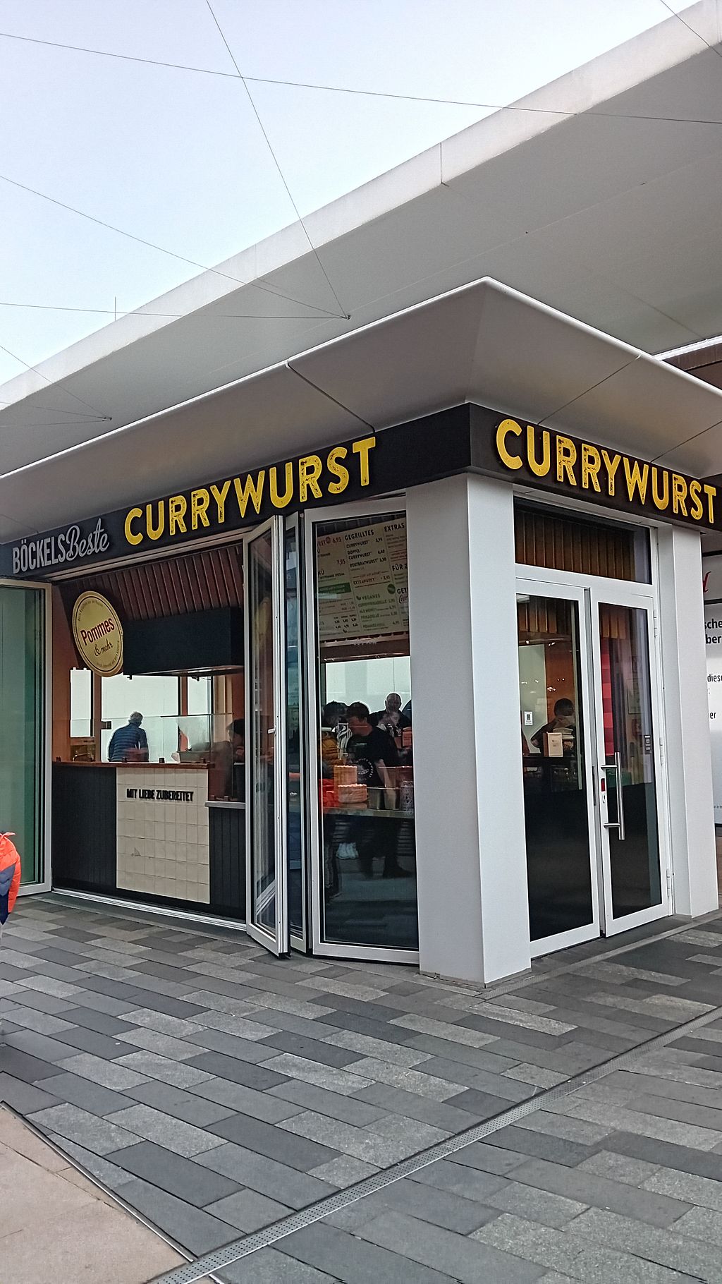 Serves meat, vegan options available. Snack bar specialising in currywurst and fries. Vegan dishes are clearly labeled. Choices include vegan currywurst, vegan meatballs, and french fries with vegan mayonnaise. Open Mon-Sat 10:30-20:00.