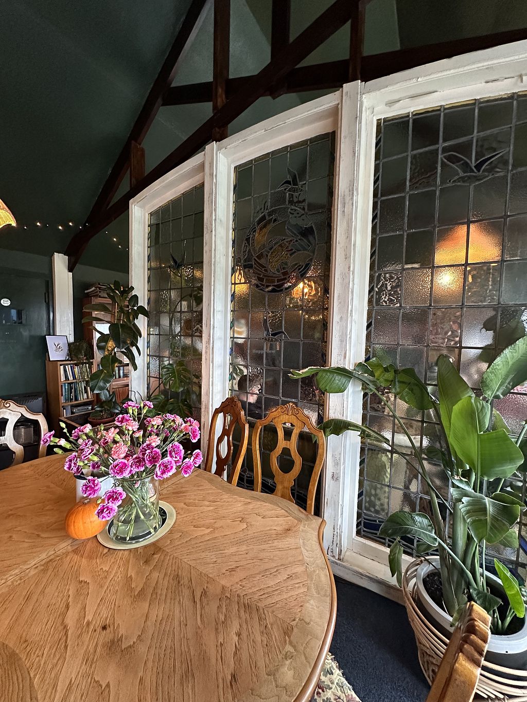 I wanted to love this place and in many respects it is lovely. The decor is vintage, seating and views are wonderful, the old books fascinating. However, I chose this place because of its vegan offerings and on the morning I went it had very limited availability. No homemade smoky beans, no homemade peanut butter, no turmeric latte. For breakfast, that left limited options for a vegan. I did have wonderful homemade sour dough, but for the price of £3.95, I expected more than one slice. I did however have a fabulous coconut and chocolate vegan cake and beautiful coffee. Server was not very knowledgeable about the place either. I would try it again as this was probably an off day. Photos show the potential of this cafe I think.