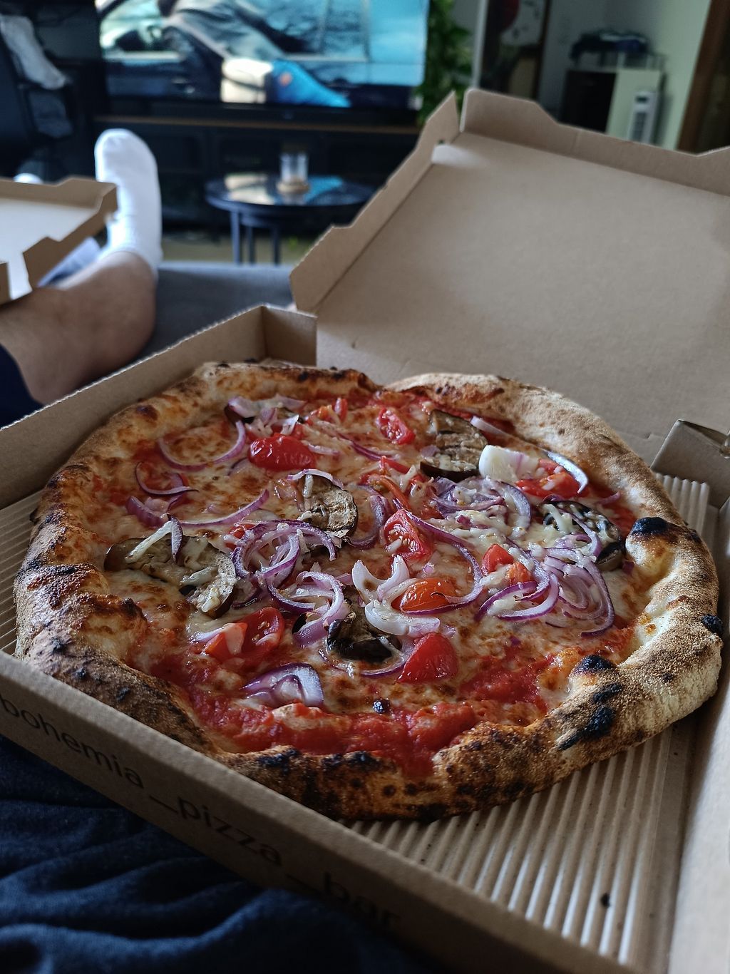 Wir haben Pizzen nach Hause bestellt, ging relativ schnell und waren noch richtig heiß. Einziger negativer Punkt ist, dass sie nicht geschnitten waren.. aber der Geschmack hat das wieder ausgeglichen, waren wirklich mega lecker. Ich fand den veganen Käse auch richtig gut und nicht so sehr klebrig, was einige ja nicht so mögen.