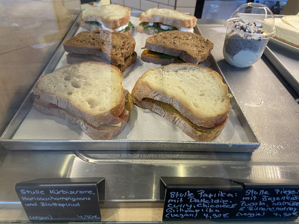 Vegetarian cafe offering sandwiches, cake, and coffee with labeled vegan options. Reported closed April 2024.