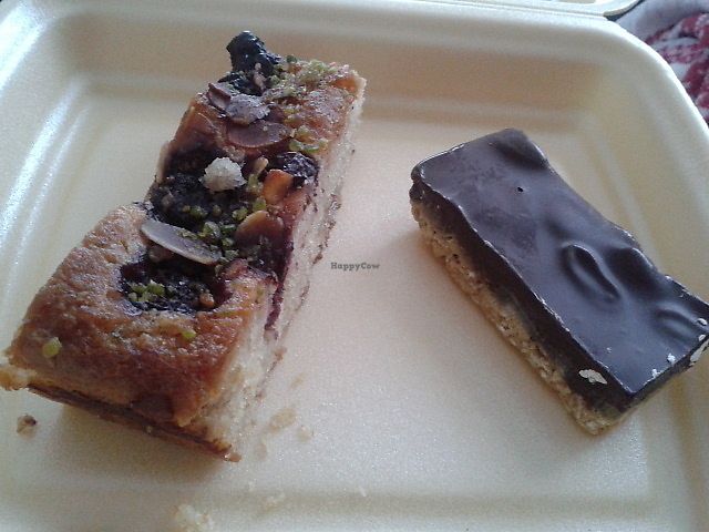 Vegan marzipan and cherry cake and 'snickers' slice