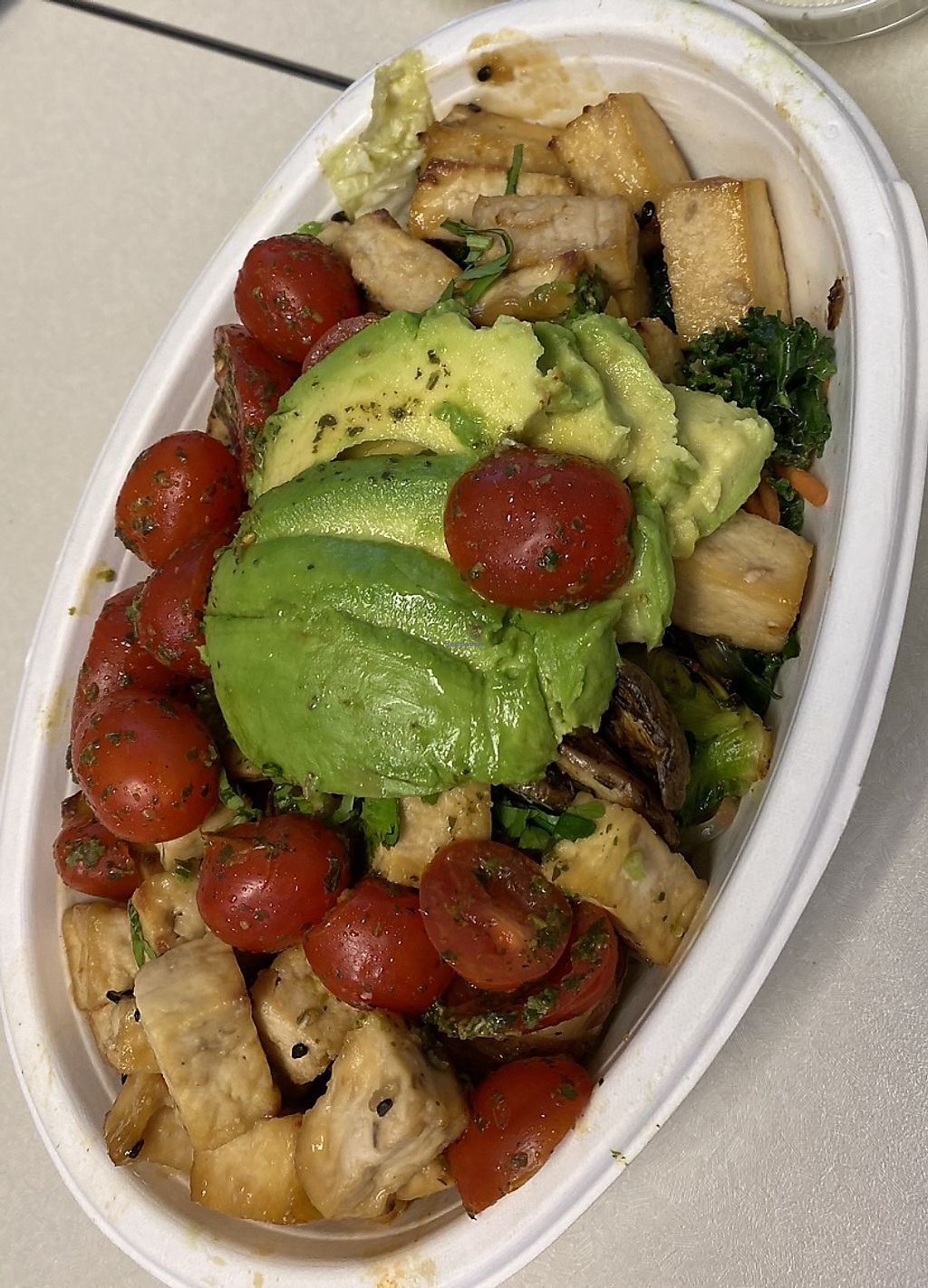 My go-to bowl at Bolay is the miso glazed tofu, ginger broccoli on a bed of kale salad.
