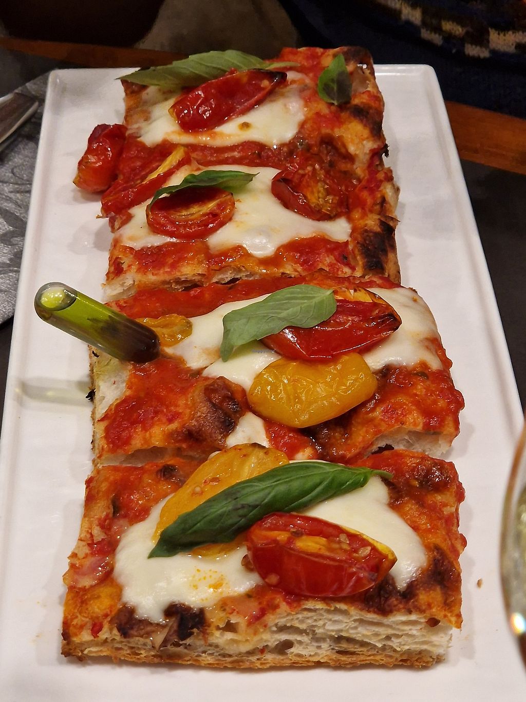 Been there for dinner, location is nice and clean. Pizza is served and cooked in different ways, from the classic one to the one cooked in a pan or by the slice. You'll find at least one Vegan option for any "kind" of Pizza. Ingredients are good and the overall taste as well. Prices are fair considering what you eat. U are given the opportunity to match a different glass of wine with any Pizza. Recommended.