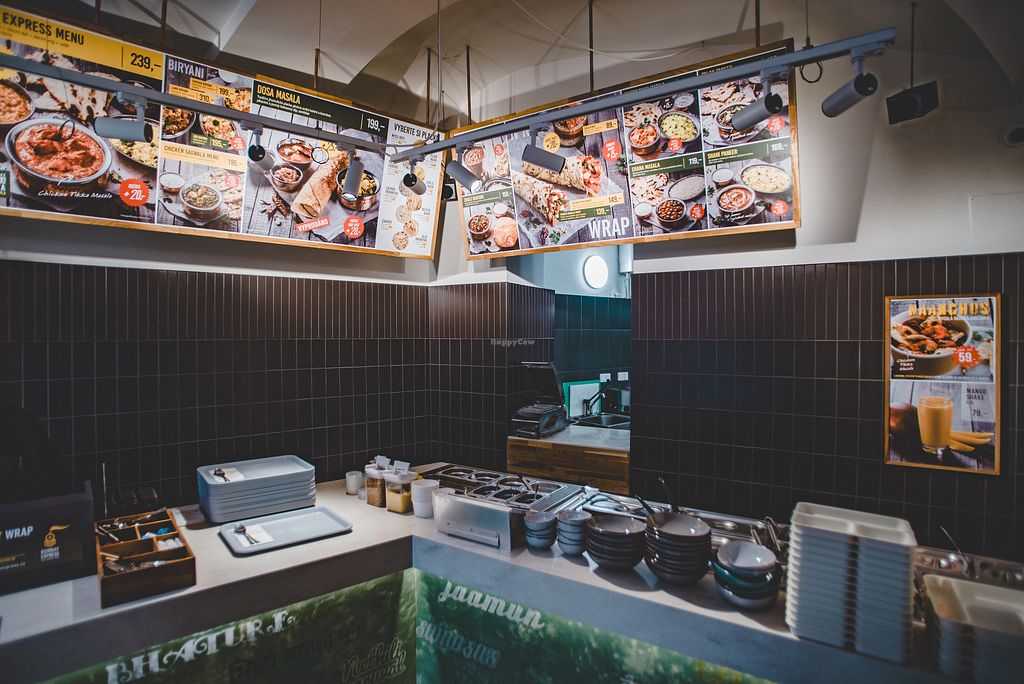 Serves meat, vegan options available. Indian fast-food chain serving clearly marked vegan dishes. Vegan offer includes channa masala, rajma with rice, snacks, flatbreads and daily specials. Open Mon-Fri 11:00-22:00, Sat-Sun 12:00-22:00.