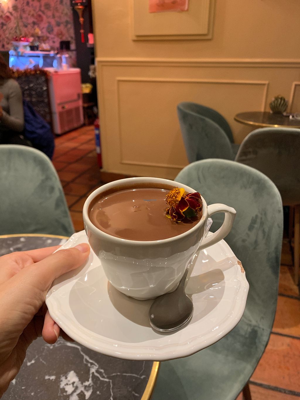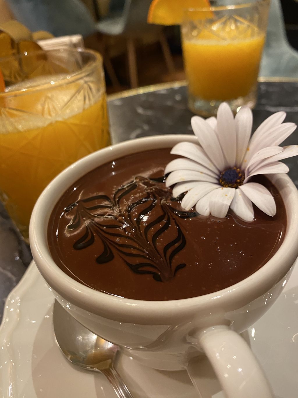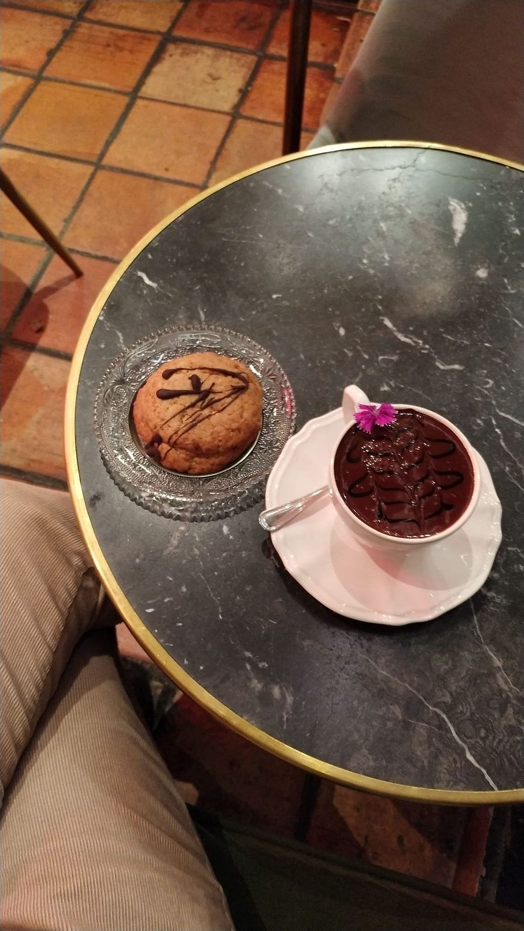 Traditional hot chocolate and coconut milk, chocolate macadamia nut co…