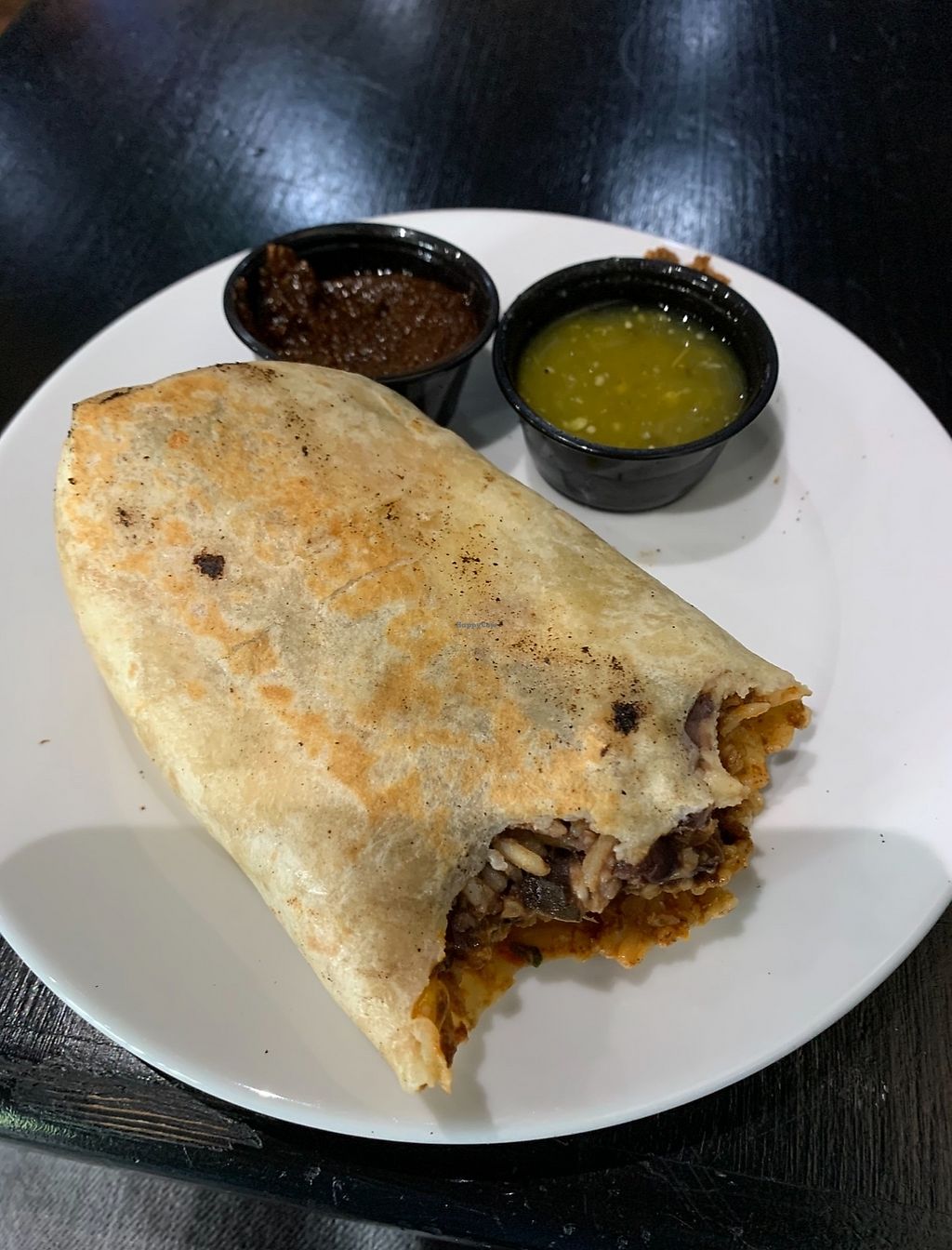 I got the bomber burrito with vegan chorizo and vegan queso and it was really good. Very flavorful. The hot sauces are tasty as well and are a good spice level. I just wish the vegan queso wasn’t an additional $3.