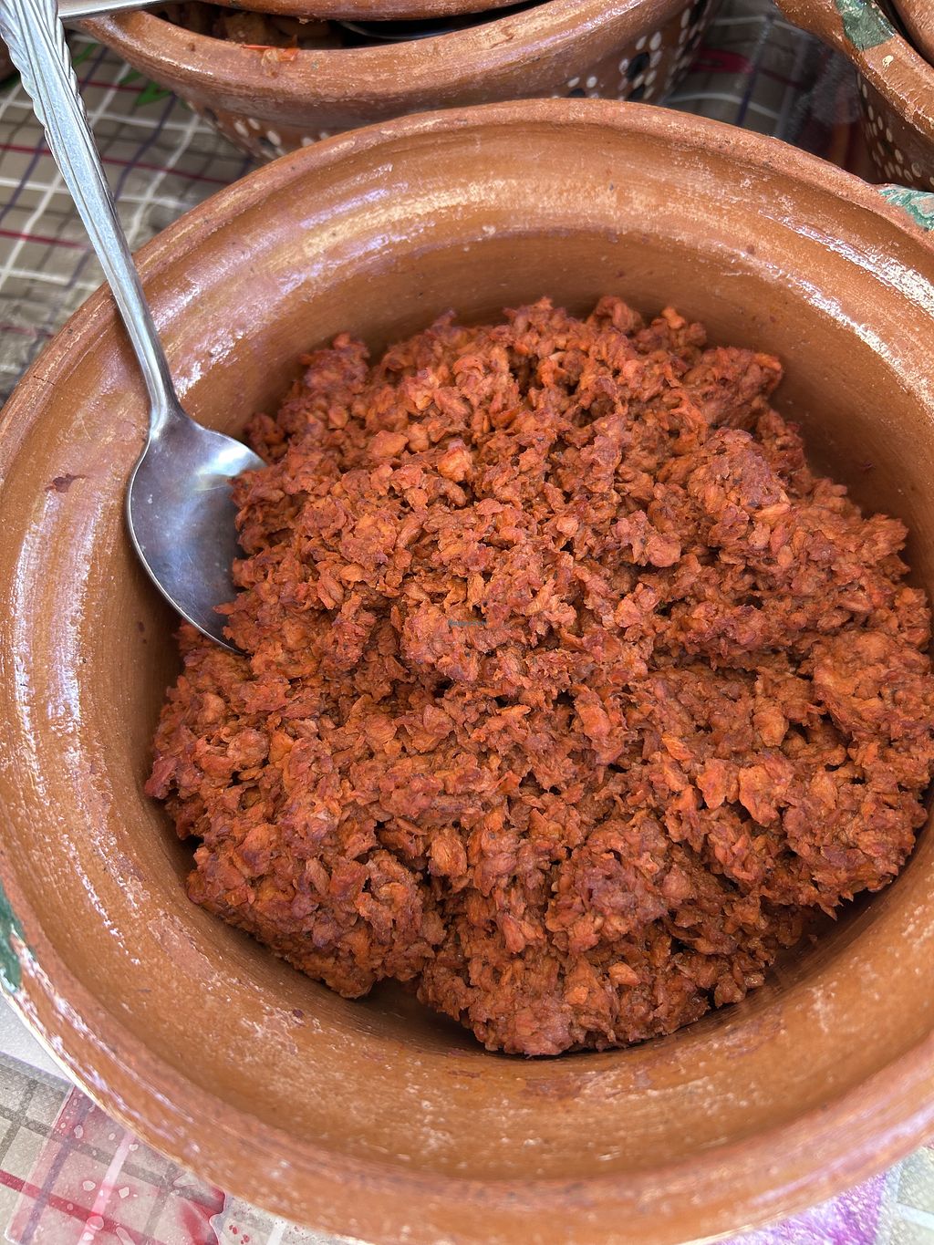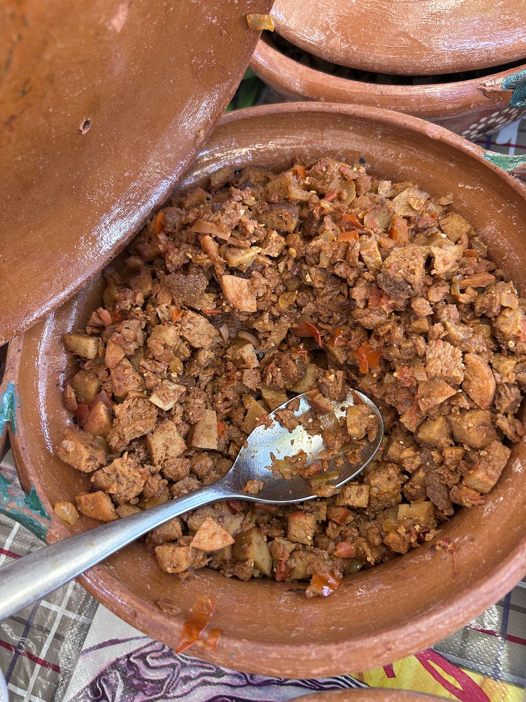 Went here to get some take out food for my mom and I. Met Elvira and hector. Owners. They have lots of traditional vegan dishes veganized. Got 4 to go orders 1/2 litter each. Got discada. Hibiscus flower. Steak and onions and pastor. When I got home the hibiscos and al pastor were the only ones I tried as they were really filling. They were delicious. I ate on site a corn dog. I was thrown away since it was so good. They use different kinds of proteins like seitan. Lentils. Soy and tofu. Also friend their 2 kinds of cauliflower nuggets. And a hibiscus drinks. They open only Saturdays from 11am to 6pm. It’s cash only or bank transfer. They have been opened since 2021.