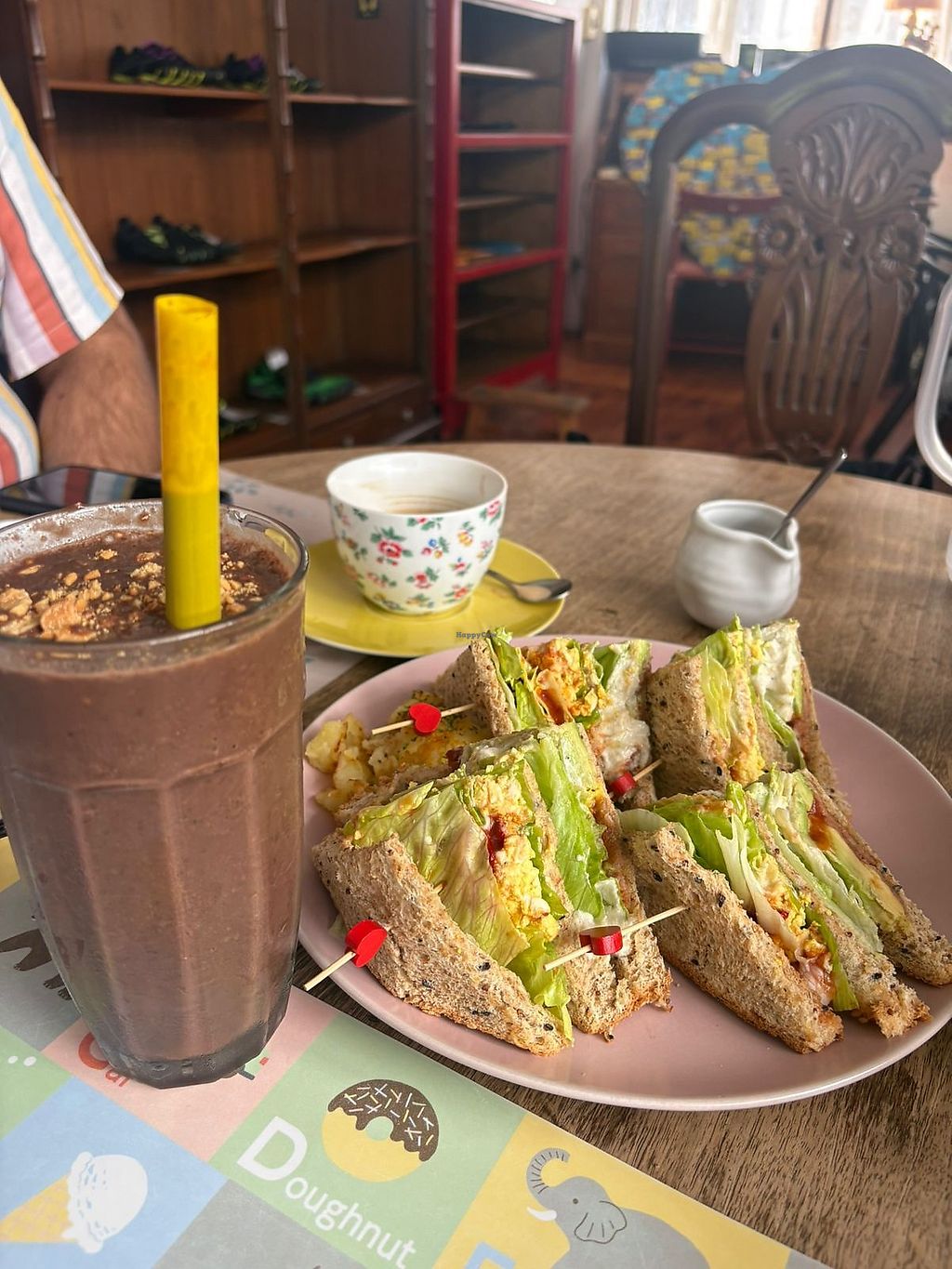 Cafe with lovely owner & staff. Simple home made western lunch fare. Had the tofu scramble club sandwich and avocado smoothie