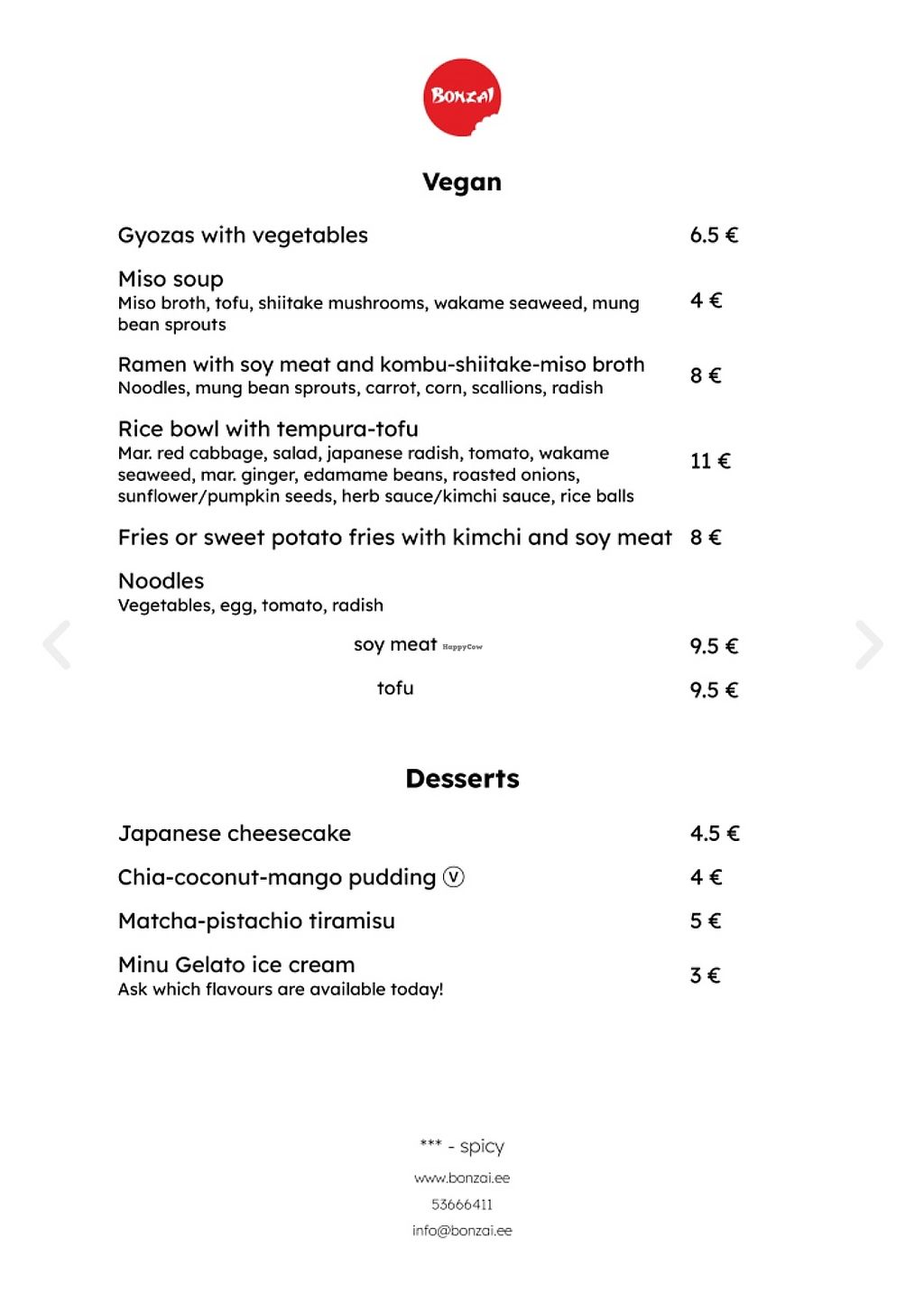 New menu as of August 12th, 2025.