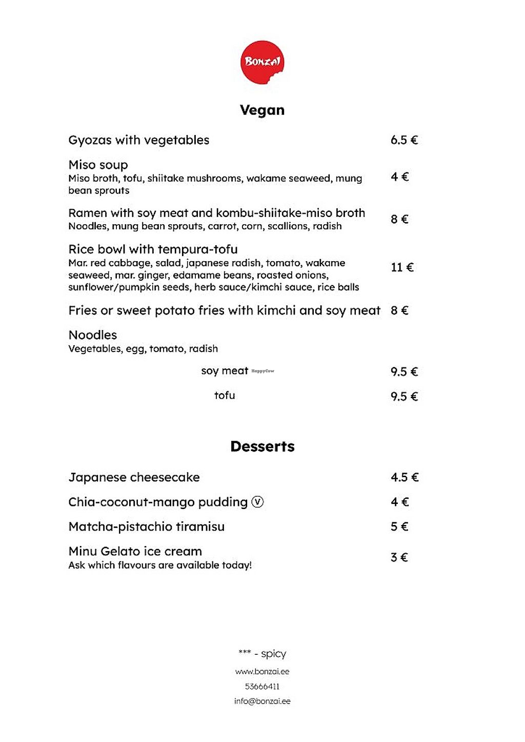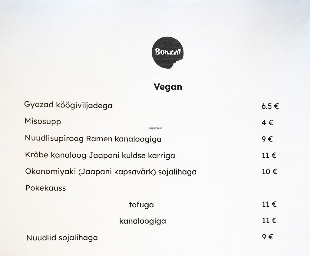 Vegan menu
