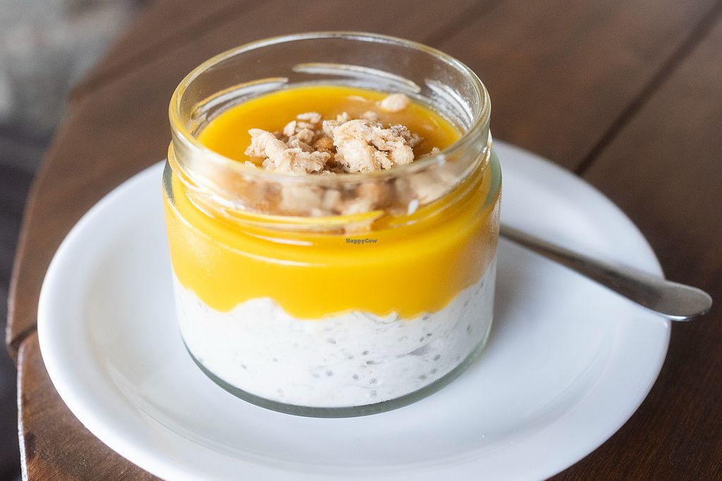 Chia pudding with mango and granola.