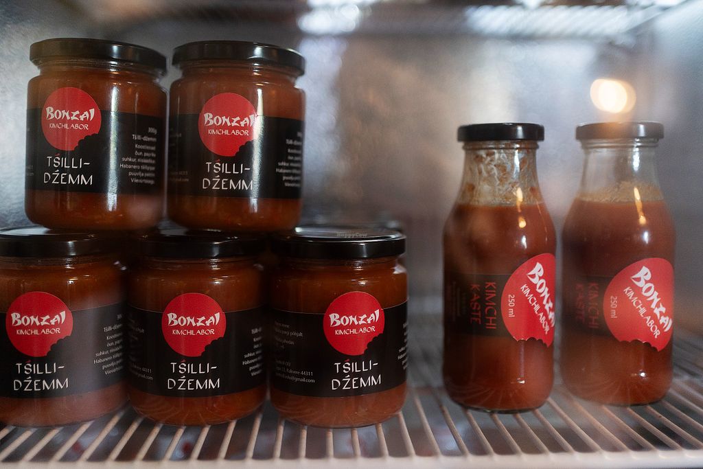 Restaurant store with house kimchi and chilli jam.
