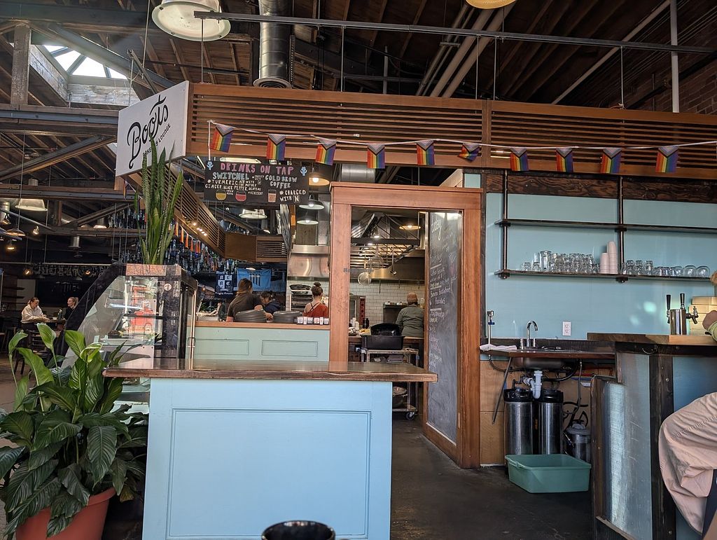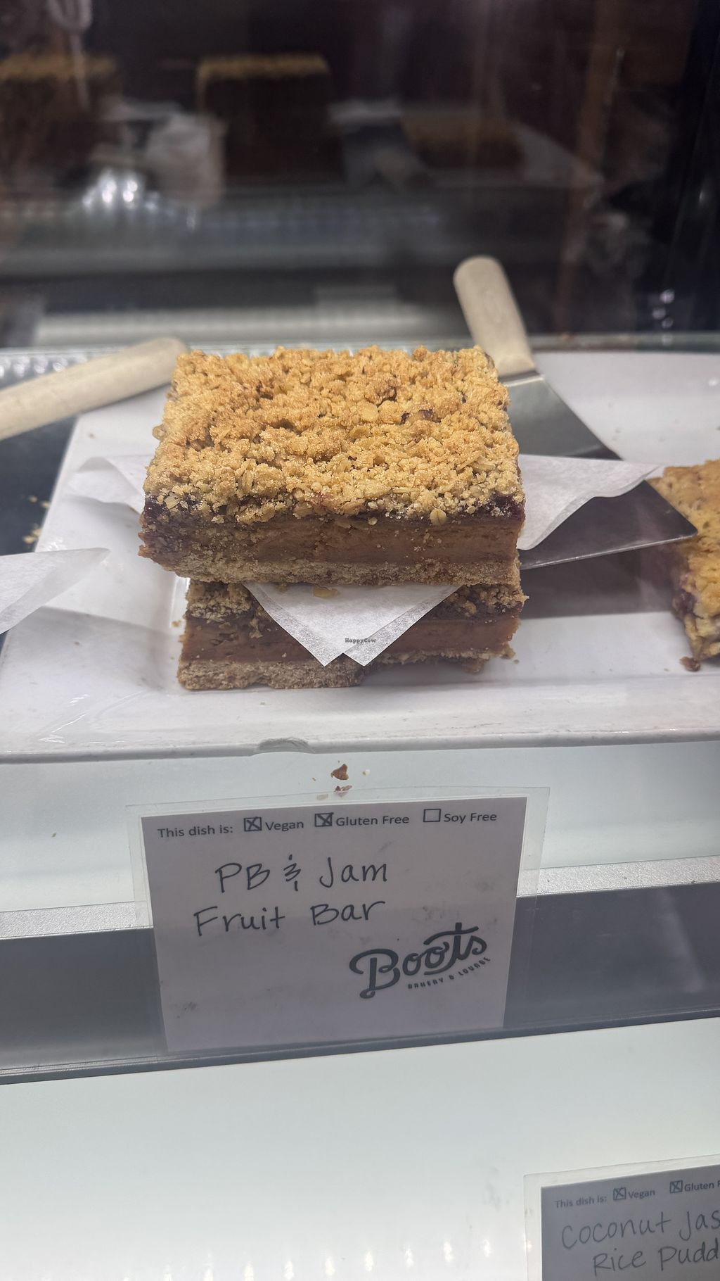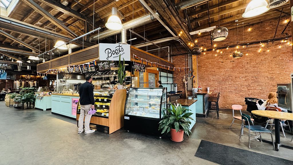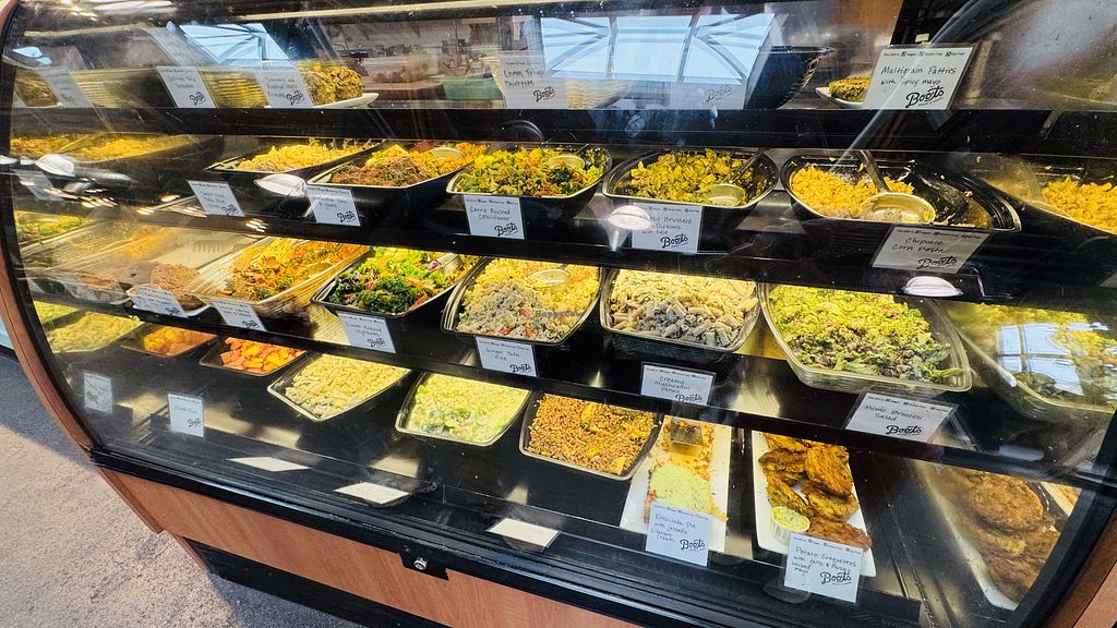 Read moreInside is a charming food court with lots of table seating for large and small groups. Boots is 100% plant based and has a wide variety of side dishes, salads, entrees, bakery items (cookies, cinnamon rolls, cakes etc).