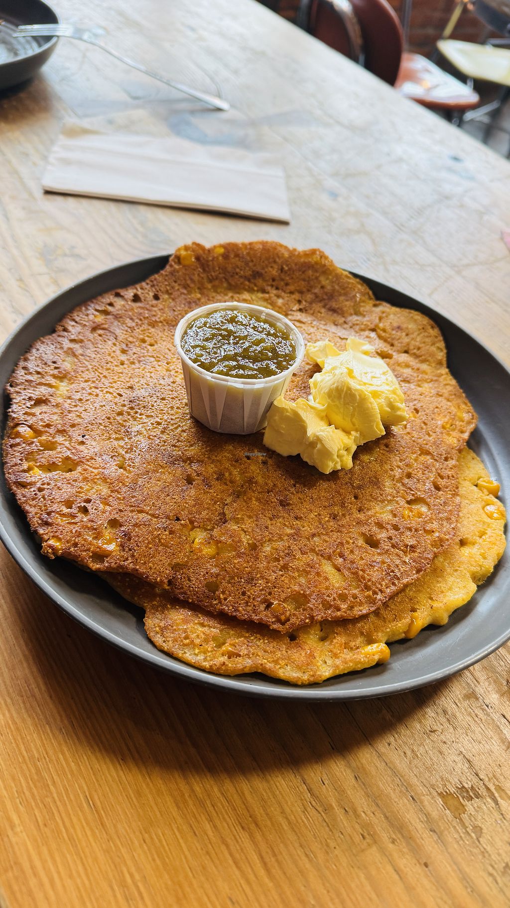 I had an amazing pumpkin waffle with chai butter! (seasonal option I’m sure). Chatted with one of the owners for a bit who was so kind. They share a cool communal space with a coffee shop, pizza spot, and brewery. Highly recommend checking it out!!