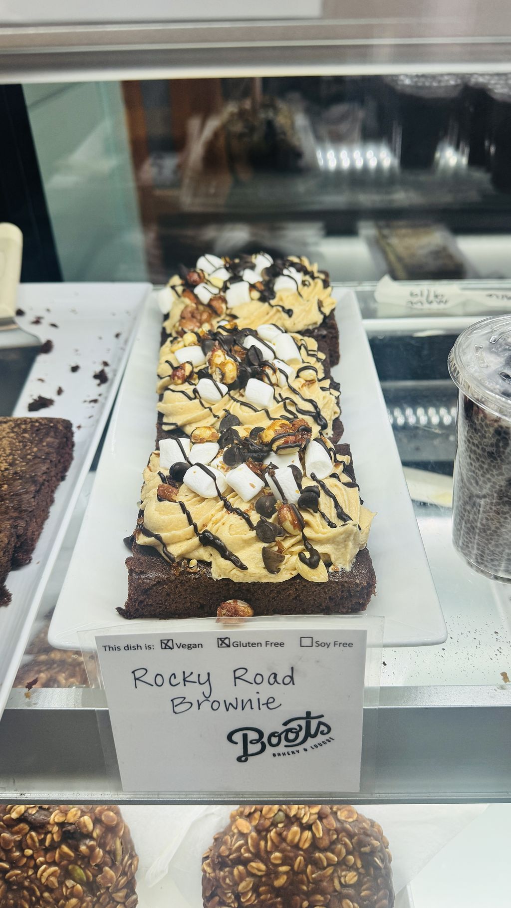 Everything is both vegan (no dairy milk for coffee anymore 😁) and gluten free (for those who are looking for that). I had a lemon raspberry cinnamon roll (sooooo delicious) and three sides which are all unique and VERY tasty. The sides were supposed to be to go but they were ALL so good that I ate part of each (cheesy brussel sprouts and kale, a tofu scramble and spicy tofu and squash). I read so many good things about the waffle that I ordered a half order and I was so tasty with the chai butter and maple syrup, you’d never know it was gluten free!!! The staff was incredibly sweet and helpful (shoutout to Alison who puts her heart and soul into Boots and its customers). I wish I lived here- I’d be a regular ♥️♥️♥️.