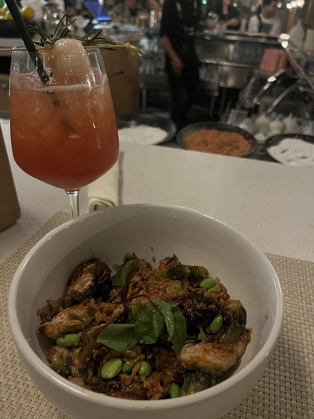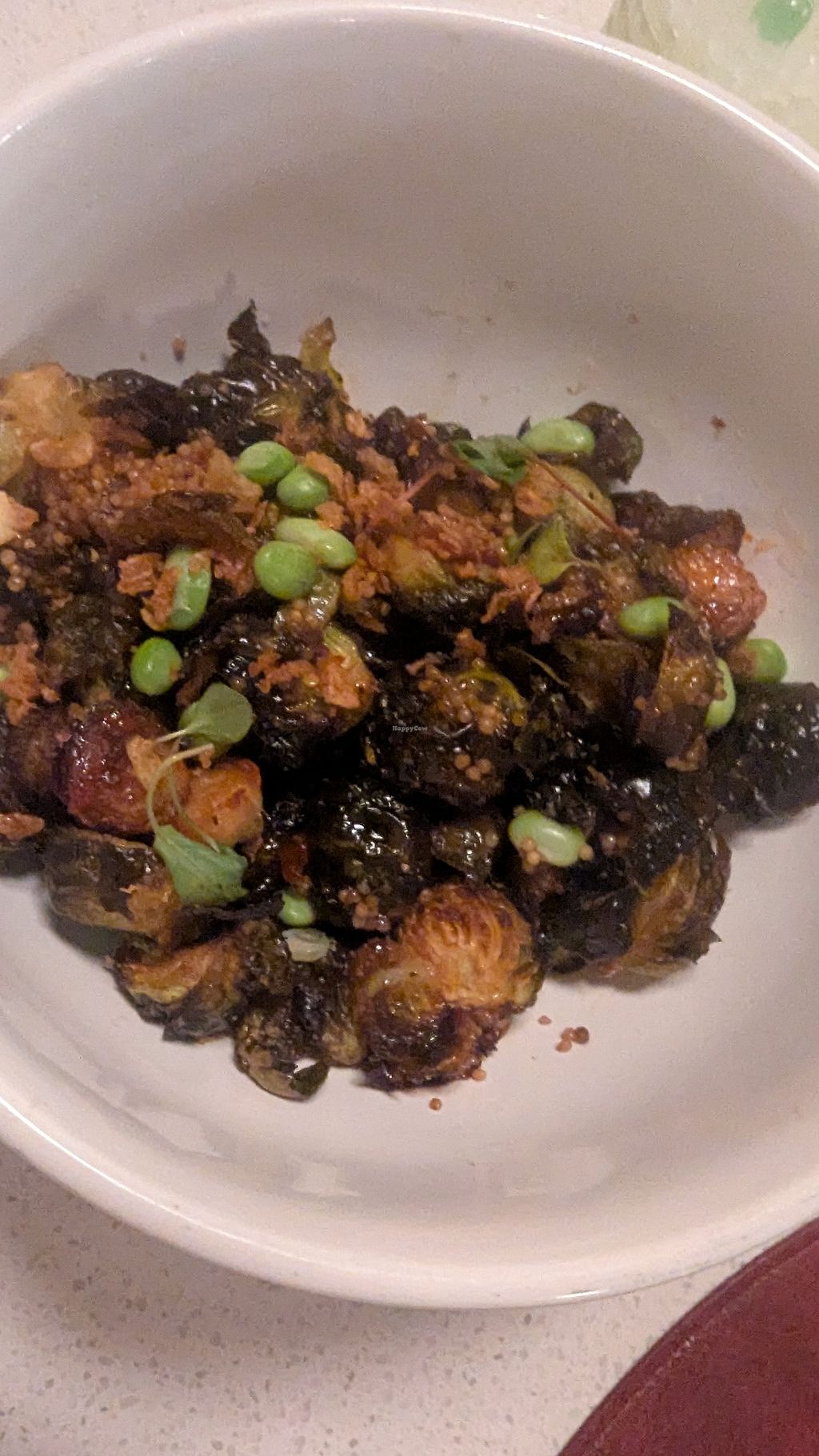 I think the brussel sprouts were phenomenal and the portions were huge. The bowl was large and I shared it with my mom and she loved it! It's not spicy at all and it has the right enough glaze and sweetness.