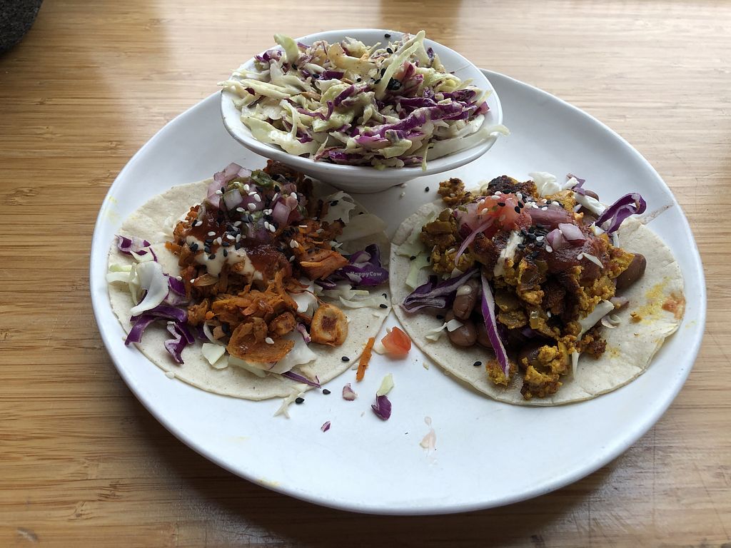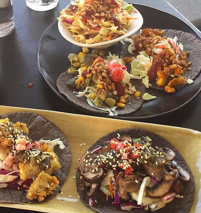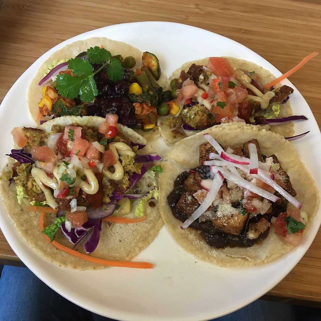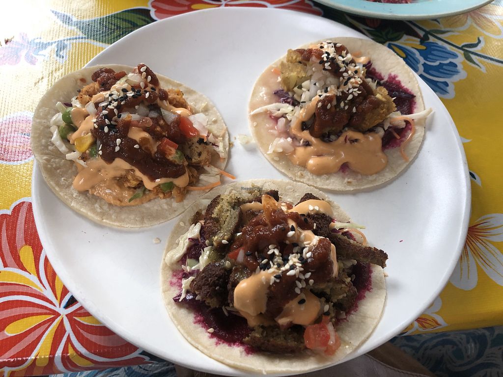 2 tacos falafel + 1 taco tempeh + 1 special of the day