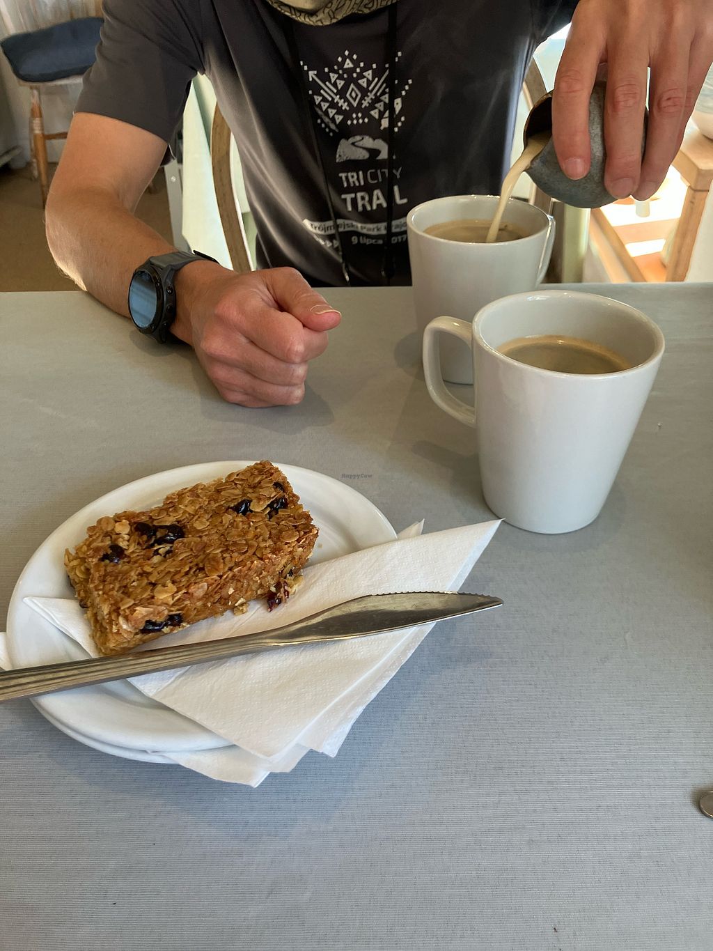 Great spot to stop before/after walking around St Abbs. They had a vegan lentil & tomato soup, oat milk and I got a delicious flapjack. Also had some baked potato and pie on the menu. Some gluten free options.