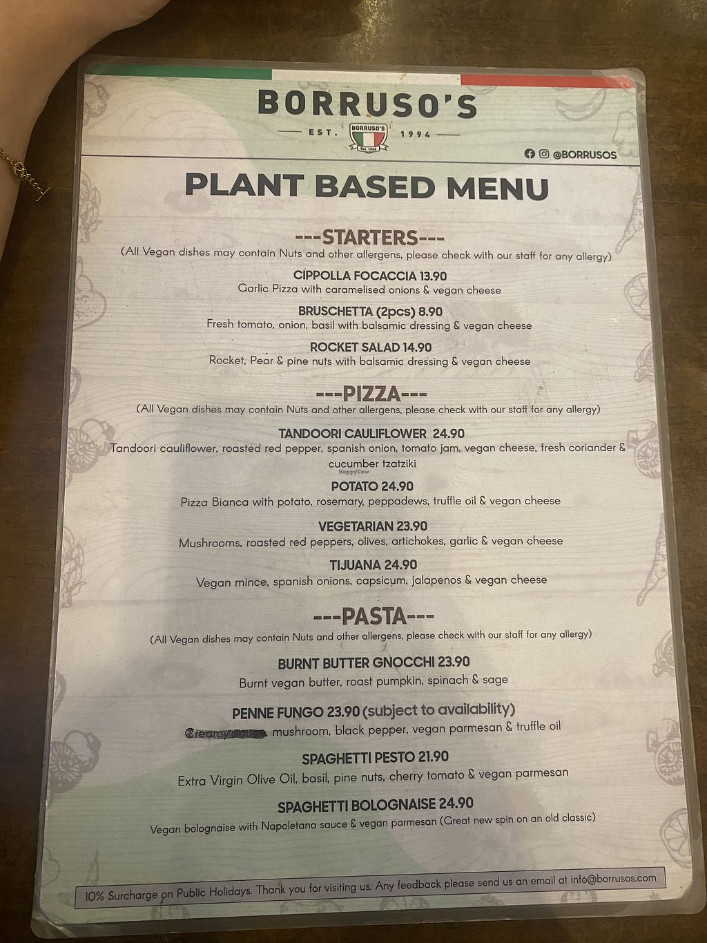 Was quite excited to have seen that they had a vegan menu at Borruso's and wanted to give it a try!