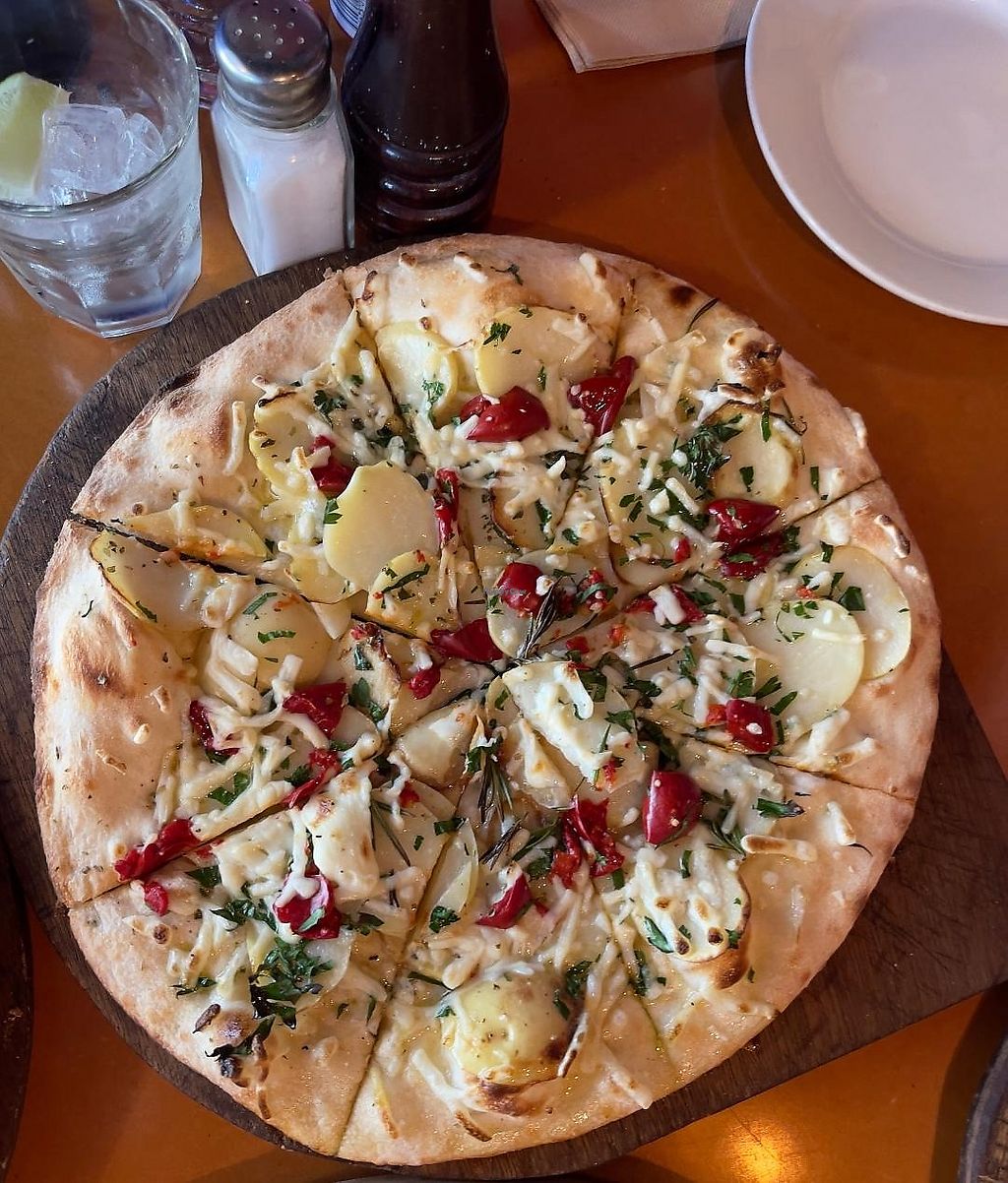 • Potato (Pizza bianca with vegan cheese, potato, rosemary, peppadews, and truffle oil)